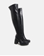 Ψηλοτάκουνες over the knee μπότες μονόχρωμες από άριστης ποιότητας τεχνόδερμα. Διαθέτουν τετράγωνο τακούνι με φιάπα και κλείνουν με φερμουάρ.