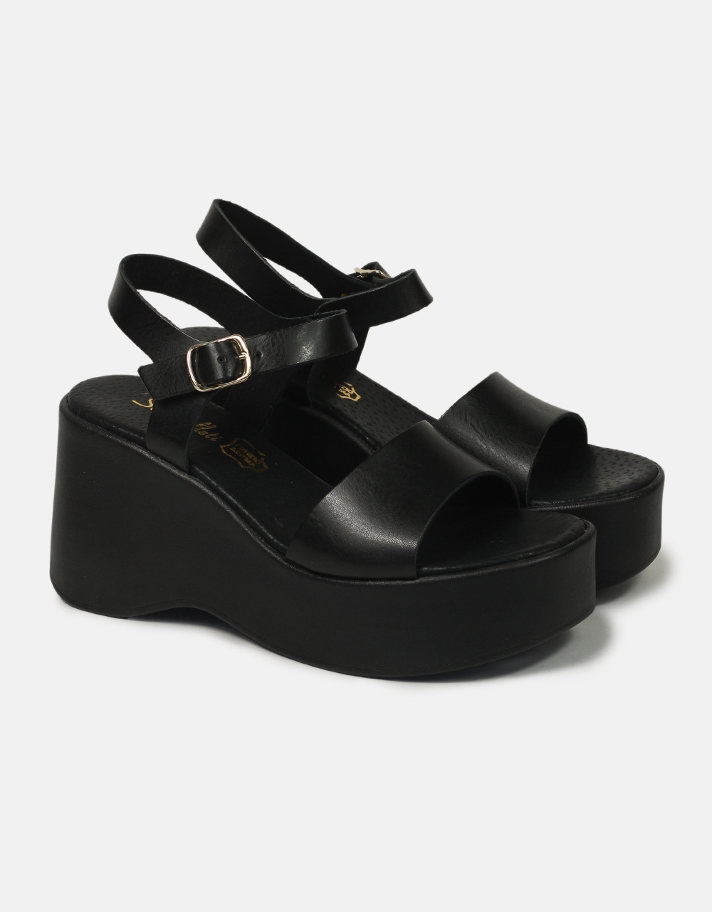Βasic πλατφόρμες μονόχρωμες Ελληνικής κατασκευής. Διαθέτουν εσωτερικά πάτο από γνήσιο δέρμα, ενώ δένουν με μπαρέτα στον αστράγαλο.
