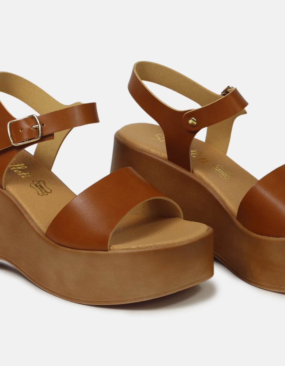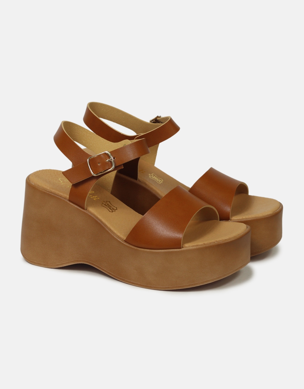Βasic πλατφόρμες μονόχρωμες Ελληνικής κατασκευής. Διαθέτουν εσωτερικά πάτο από γνήσιο δέρμα, ενώ δένουν με μπαρέτα στον αστράγαλο.