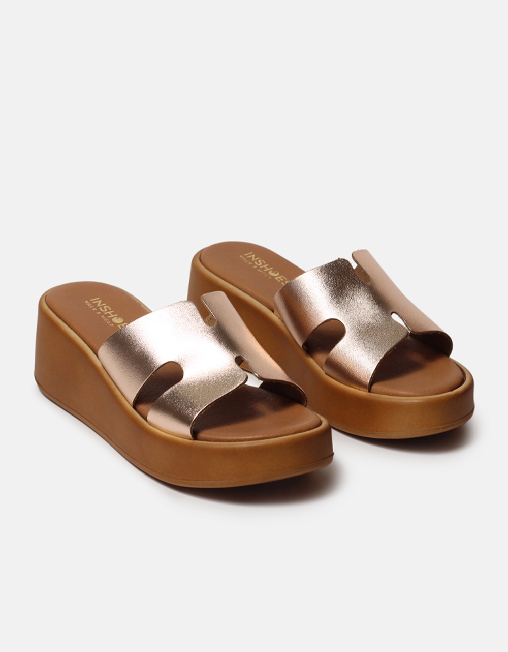 Δερμάτινες πλατφόρμες Ελληνικής κατασκευής με φαρδιά φάσα Χαλκός