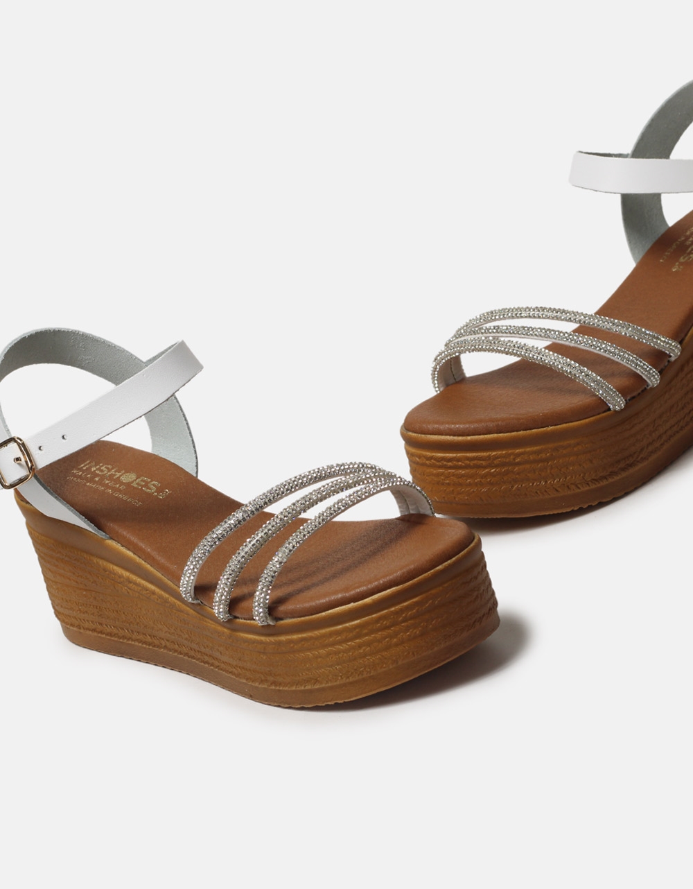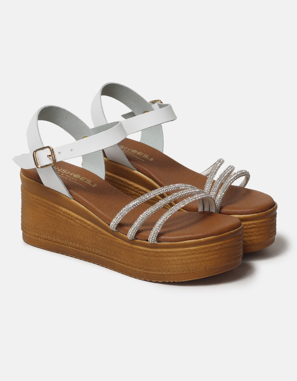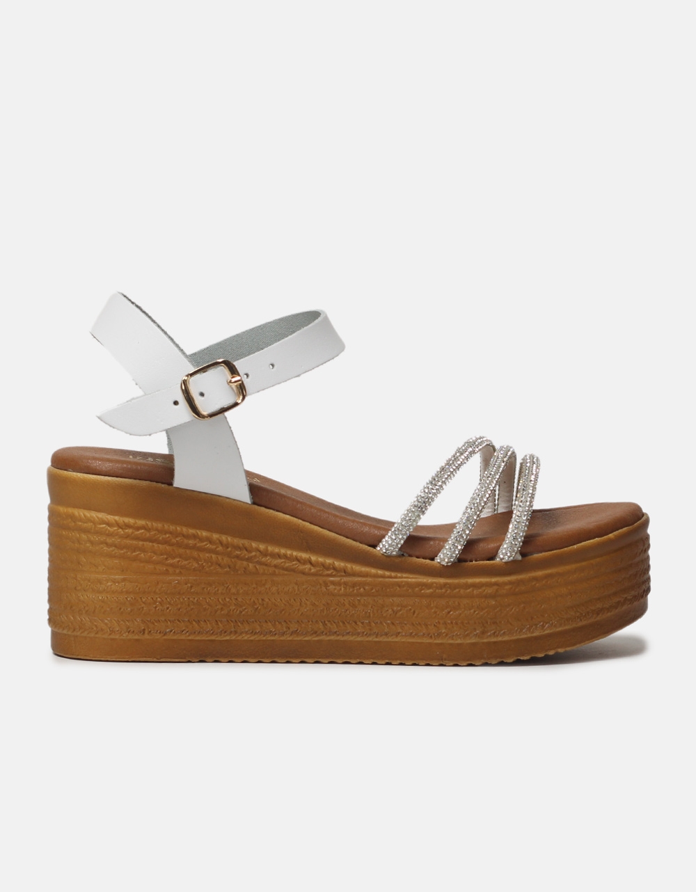 Δερμάτινες πλατφόρμες Ελληνικής κατασκευής με λουράκια strass Λευκό