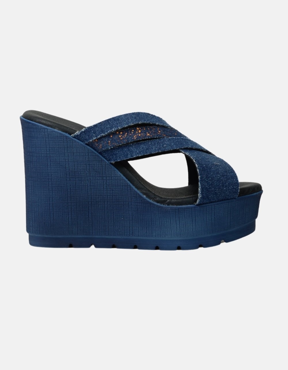 Δερμάτινες ψηλές πλατφόρμες με χιαστί σχέδιο Μπλε