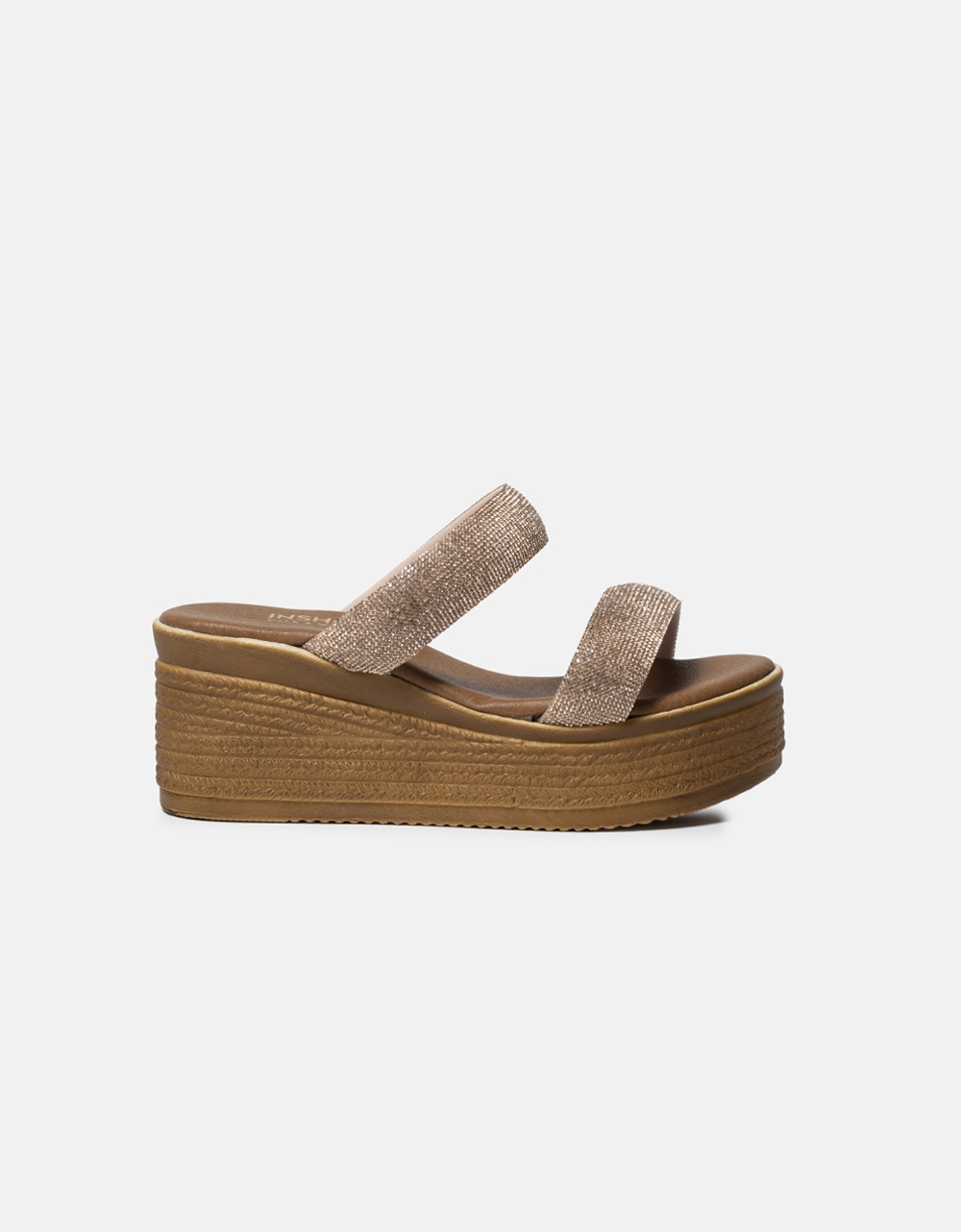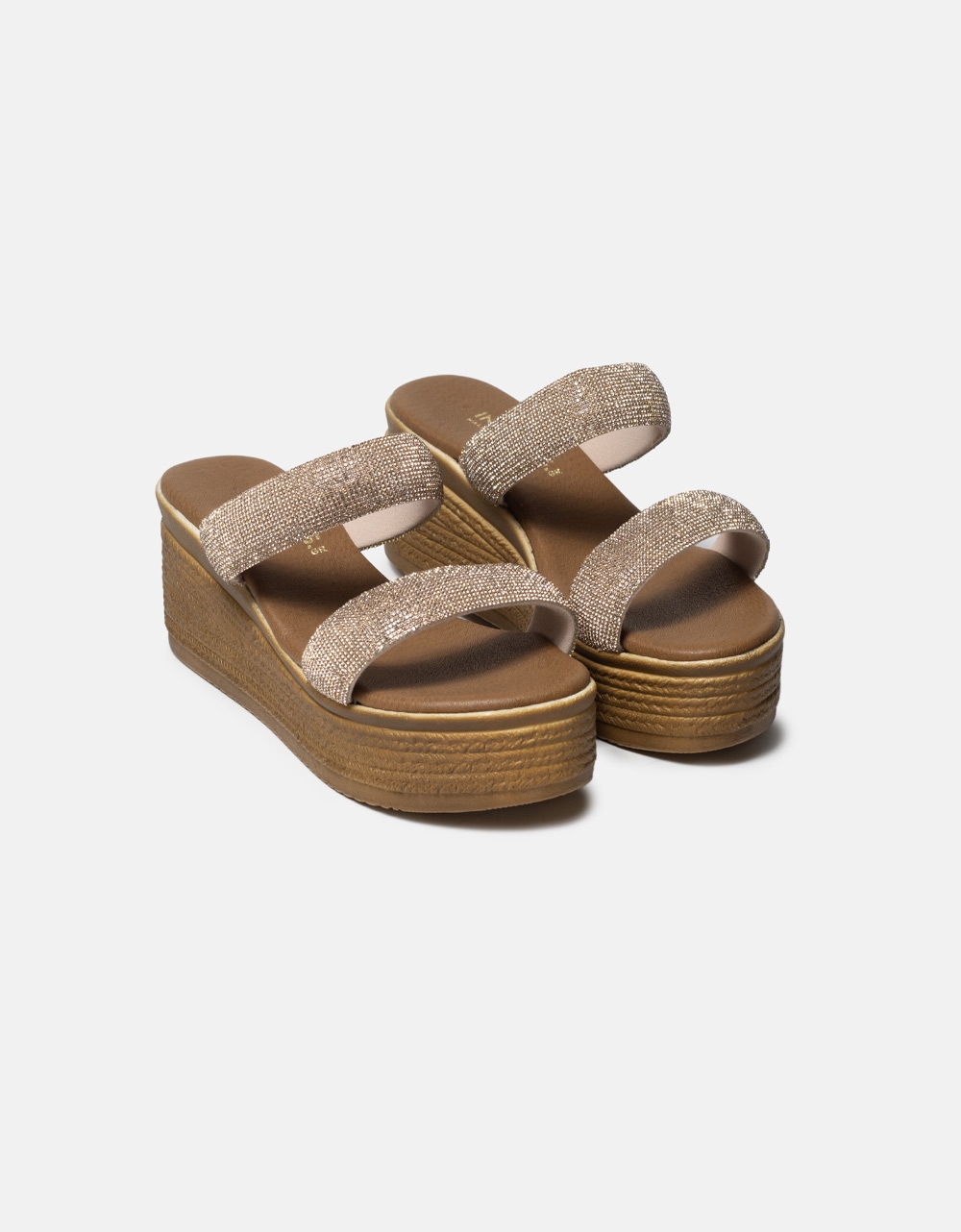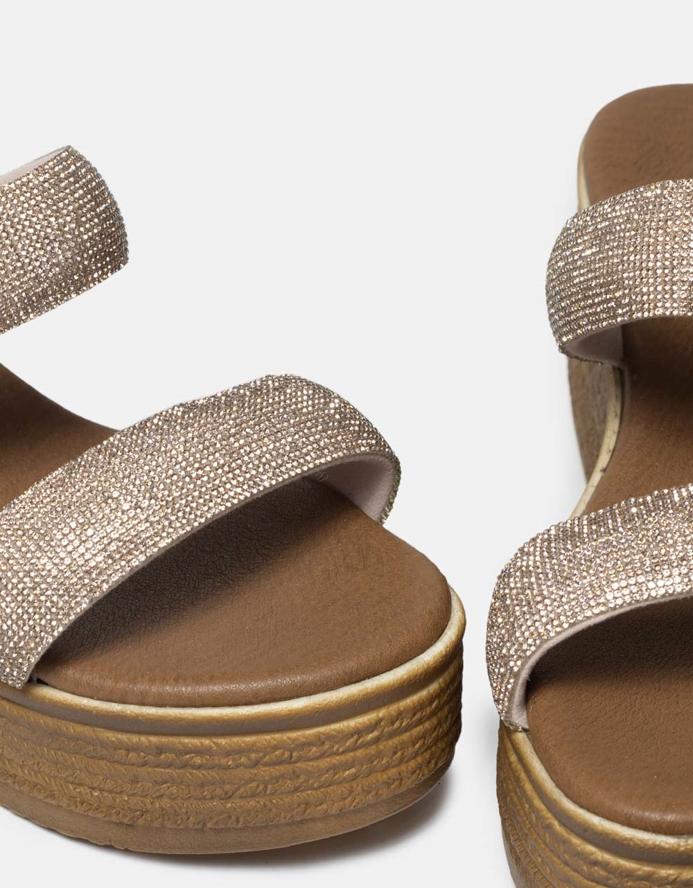Πλατφόρμες δερμάτινες Ελληνικής κατασκευής με διπλή φάσα από strass. Διαθέτουν αφρώδη πάτο από γνήσιο δέρμα και ελαστική σόλα για άνετο βάδισμα.