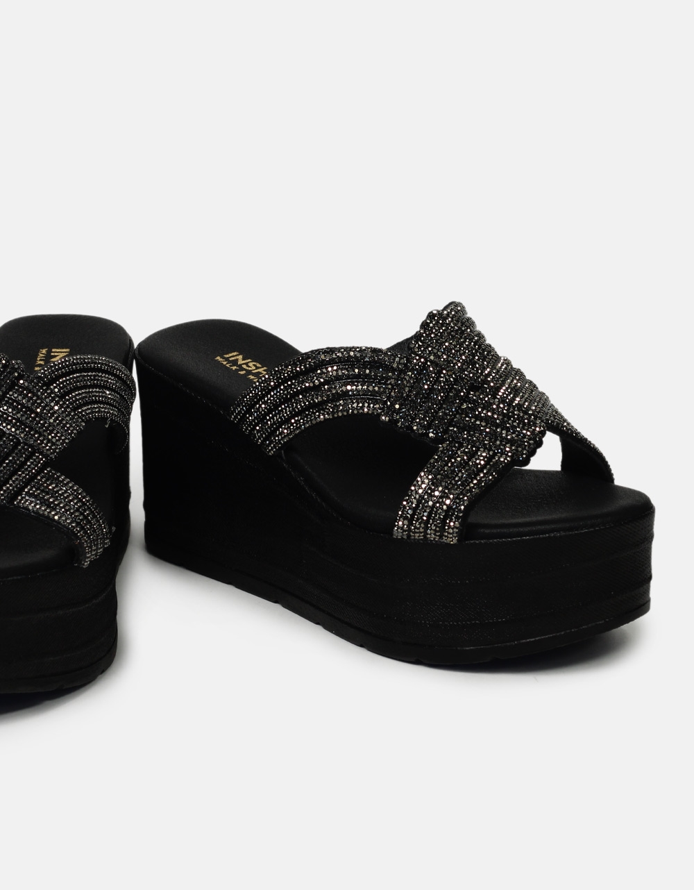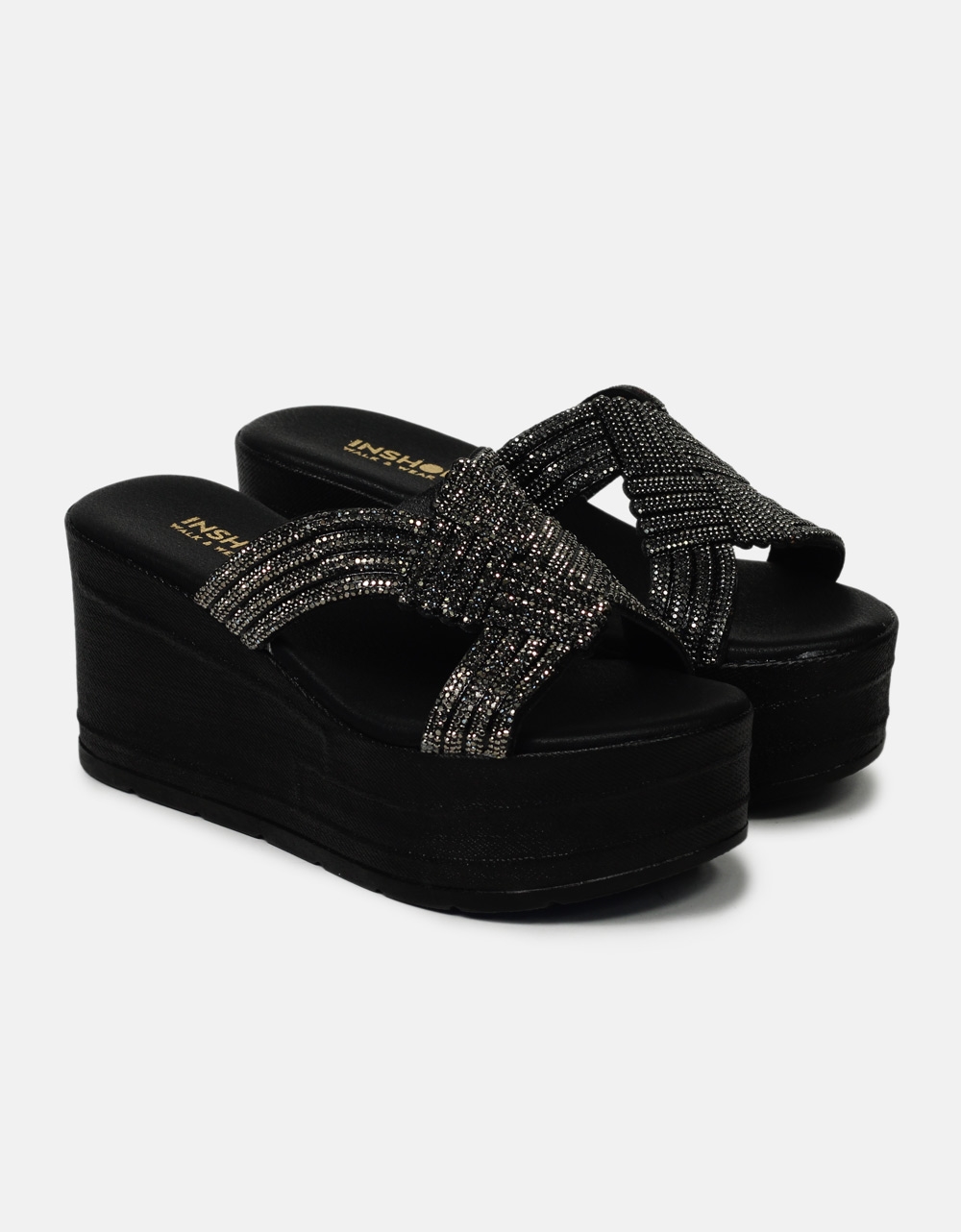 Πλατφόρμες Ελληνικής κατασκευής με φάσα από strass Μαύρο