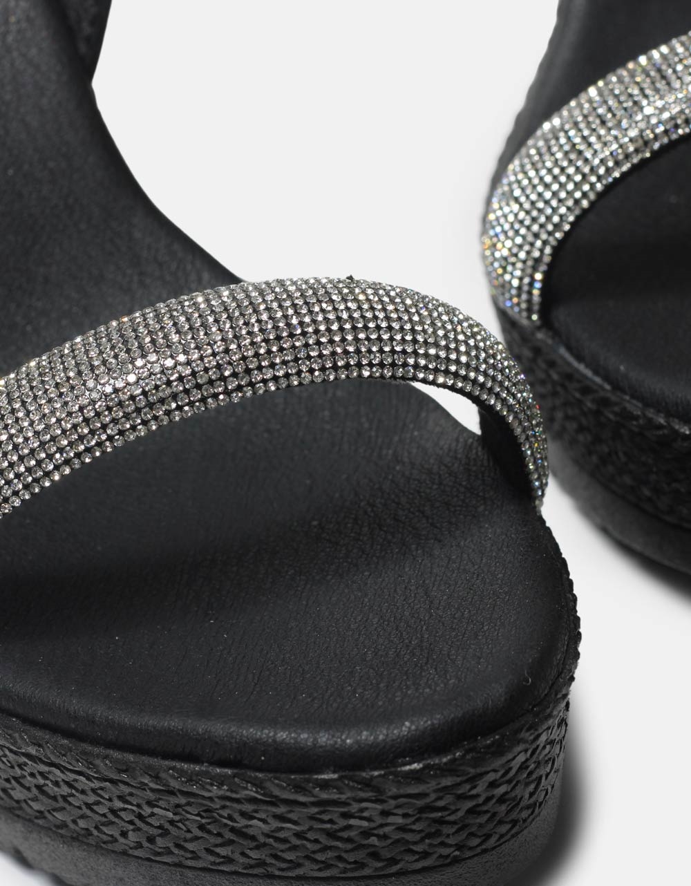 Πλατφόρμες Ελληνικής Κατασκευής με μπαρέτα και λουράκι από strass Μαύρο