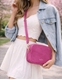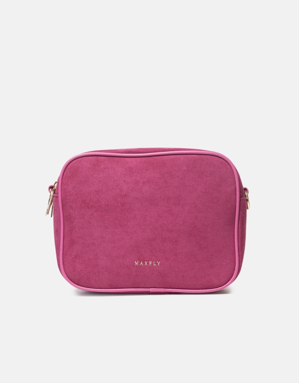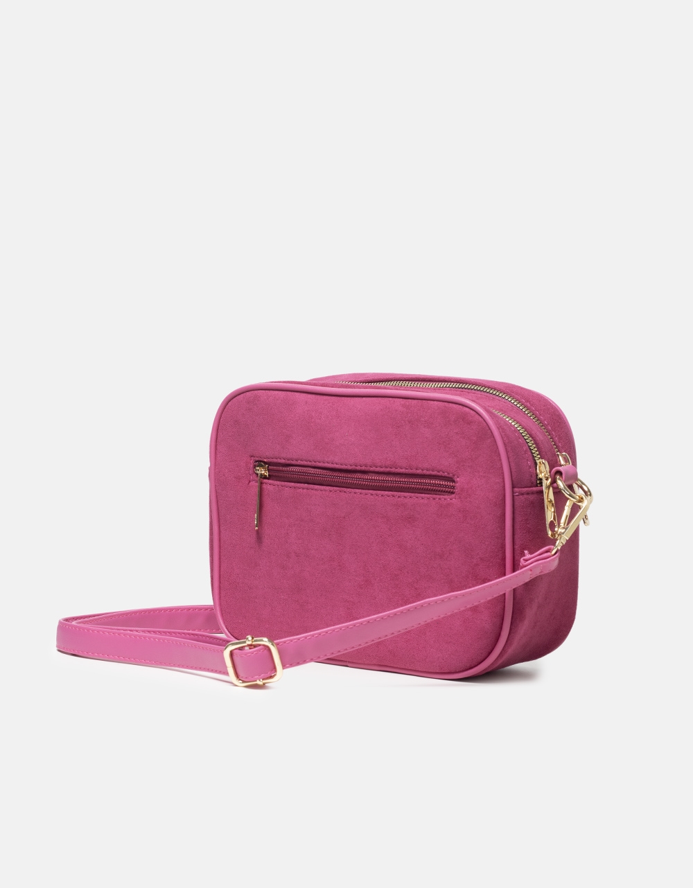 Suede τσάντα ώμου μονόχρωμη με διπλό φερμουάρ Φούξια