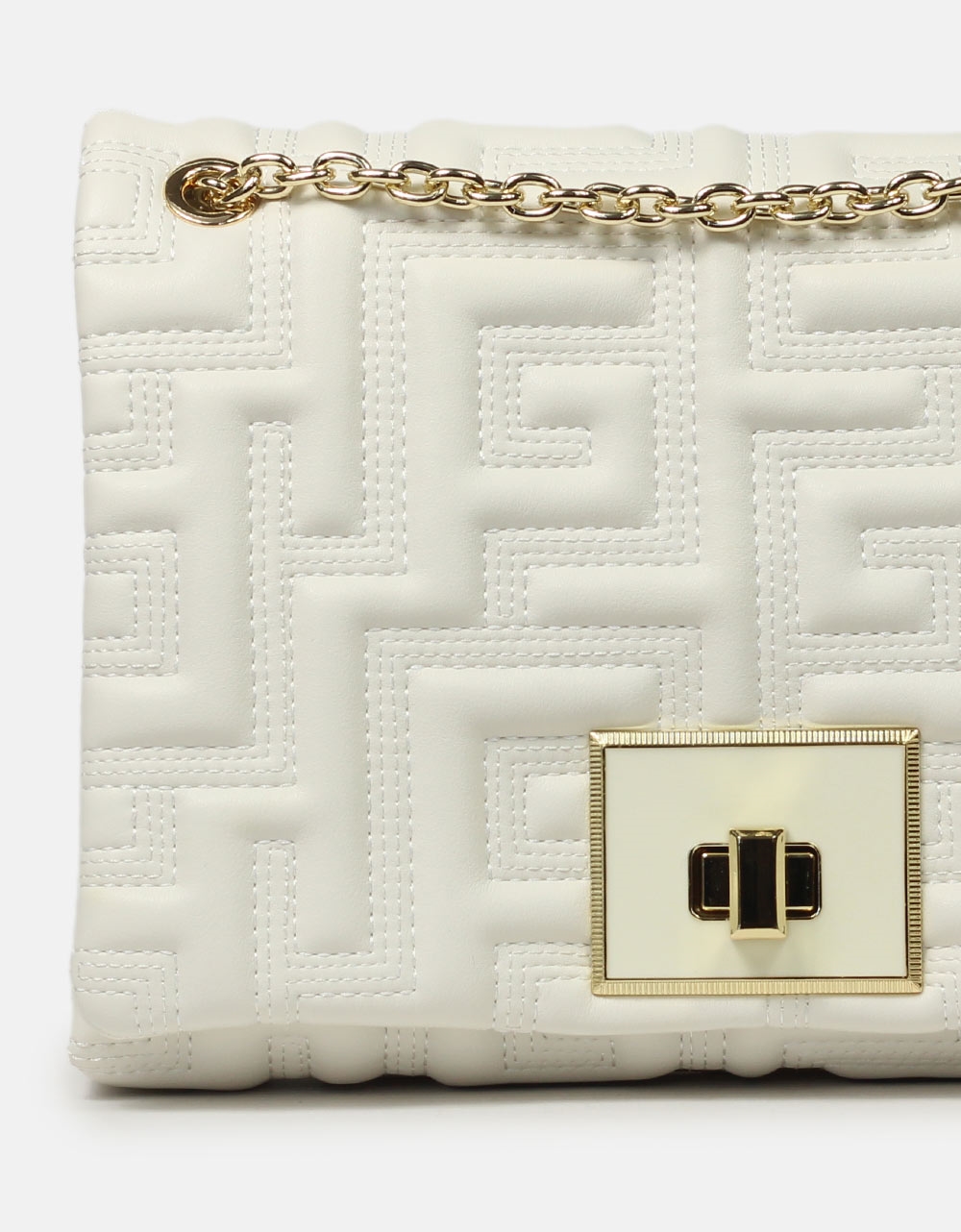 Τσάντα ώμου της εταιρείας ARI GORGIO, με μοτίβο μαιάνδρου small. Διαθέτει προσαρμοζόμενη μεταλλική αλυσίδα σε χρυσό χρώμα και κλείνει με καπάκι και κλιπ. Εσωτερικά διαθέτει τρεις ξεχωριστούς χώρους αποθήκευσης, ο ένας εκ τον οποίων κλείνει με φερμουάρ.