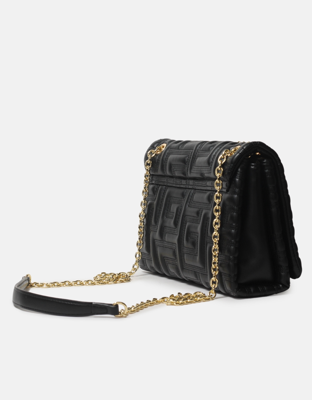 Χειροποίητη τσάντα ώμου με μαίανδρο και μεταλλικό κούμπωμα M Μαύρο
