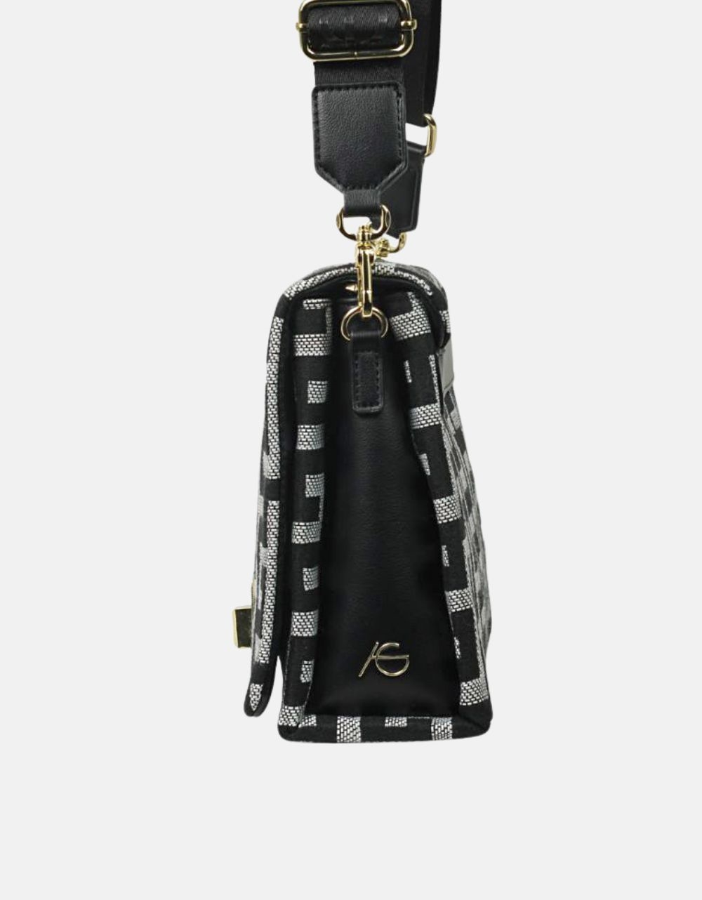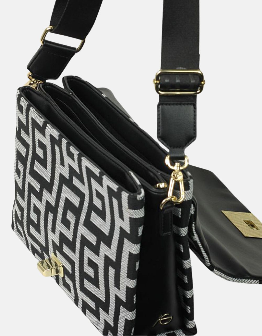 Χειροποίητη τσάντα ώμου με μαίανδρο και μεταλλικό κούμπωμα M Μαύρο/Λευκό
