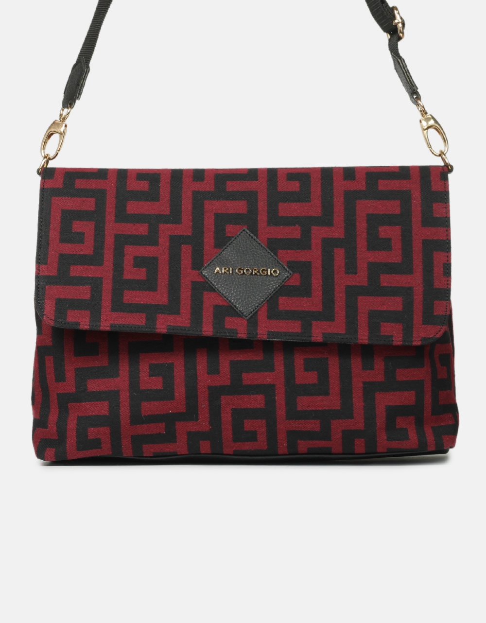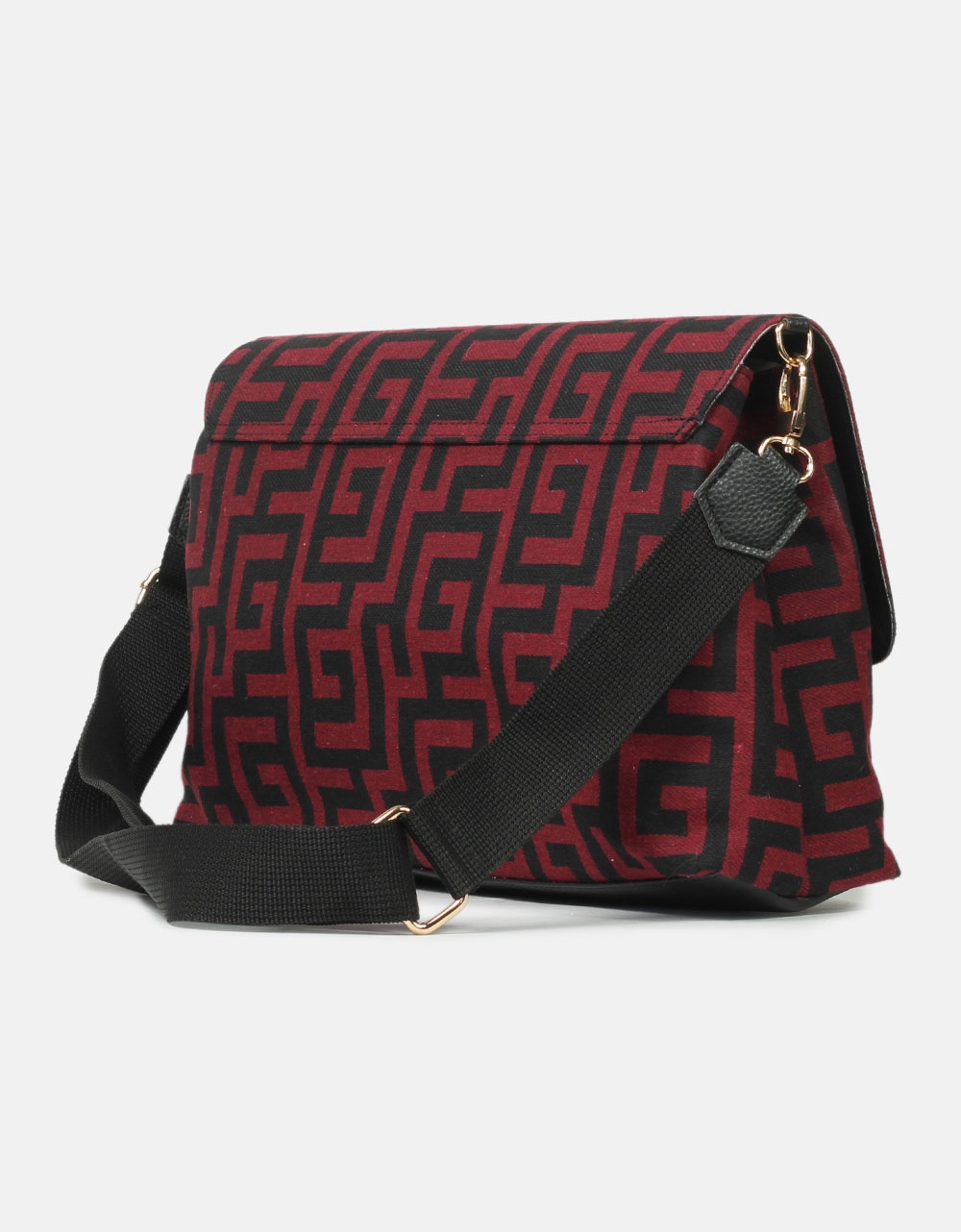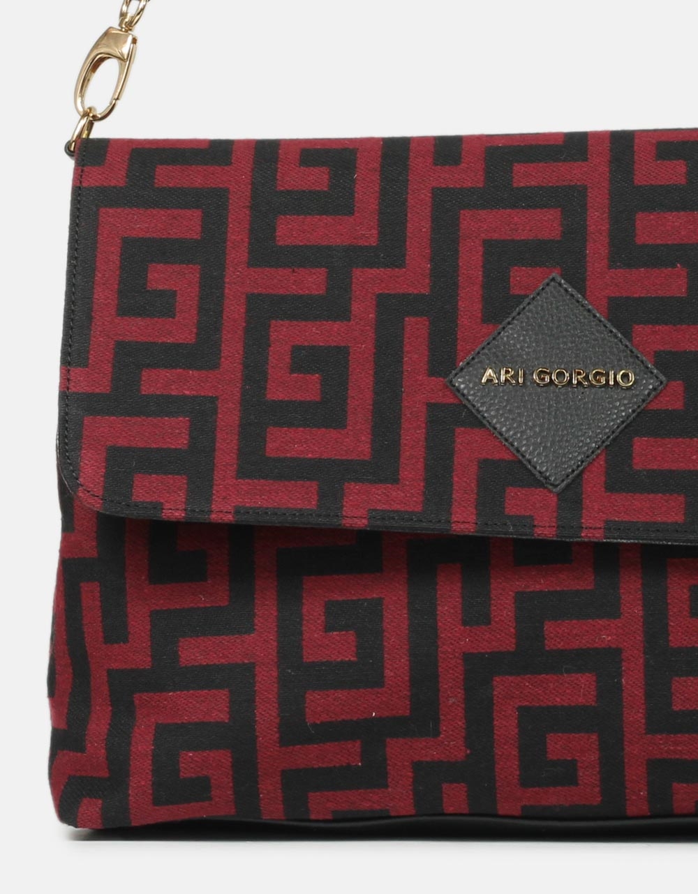 Χειροποίητη τσάντα ώμου, Ελληνικής κατασκευής της εταιρείας ARI GORGIO, με μοτίβο μαιάνδρου. Διαθέτει προσαρμοζόμενο λουράκι ώμου και κλείνει με καπάκι και κλιπ. *Υπάρχει διαθέσιμη και σε μικρότερο μέγεθος με κωδικό 82300003