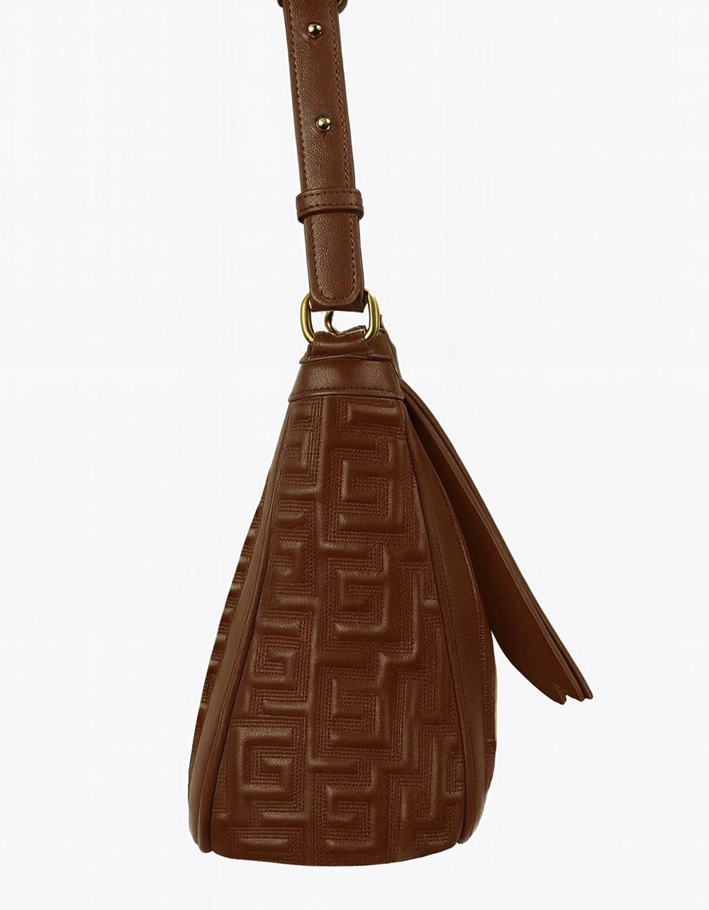Χειροποίητη τσάντα ώμου με μοτίβο μαίανδρου Καφέ