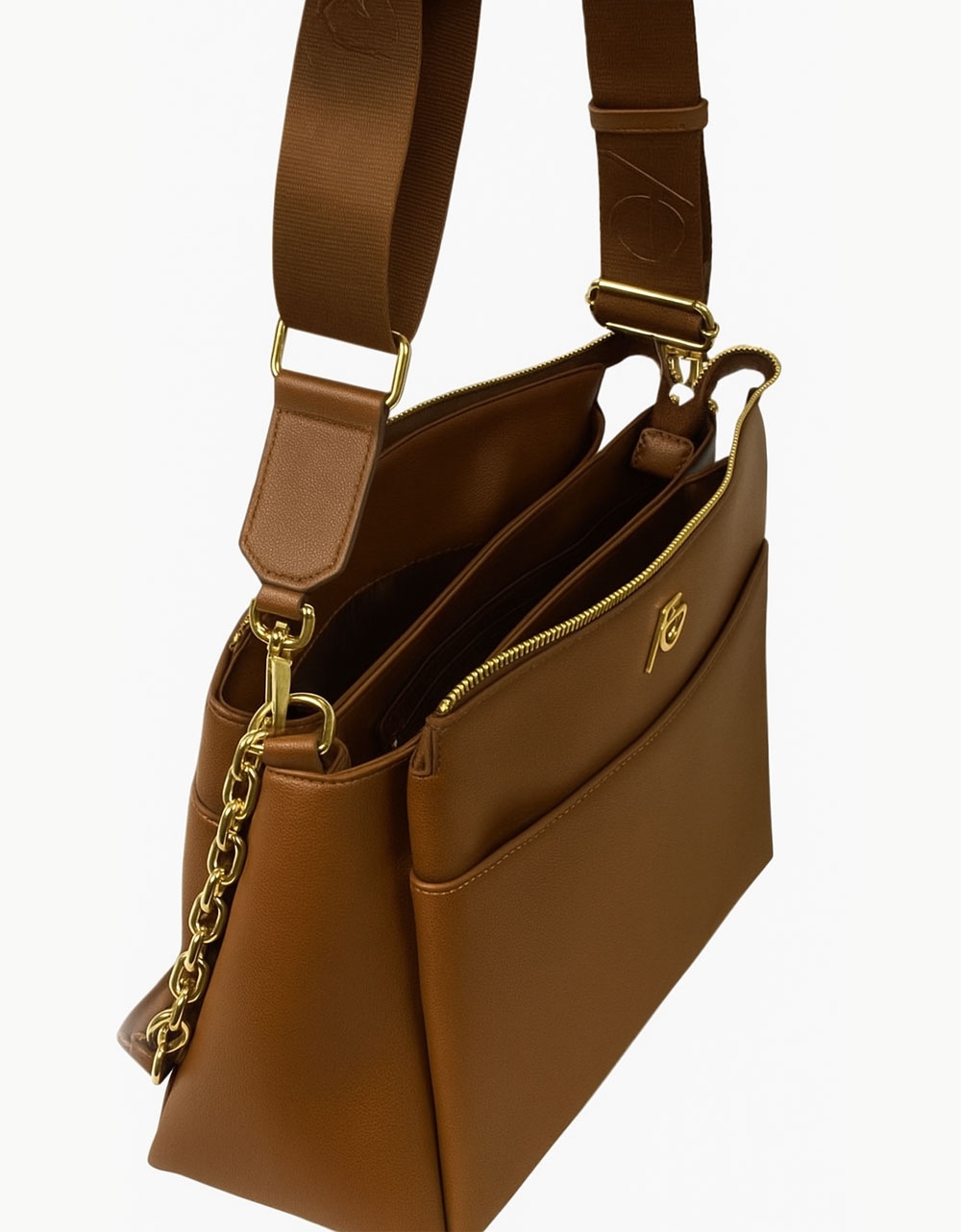 Χειροποίητη τσάντα ώμου με σχέδιο μαιάνδρου Καφέ