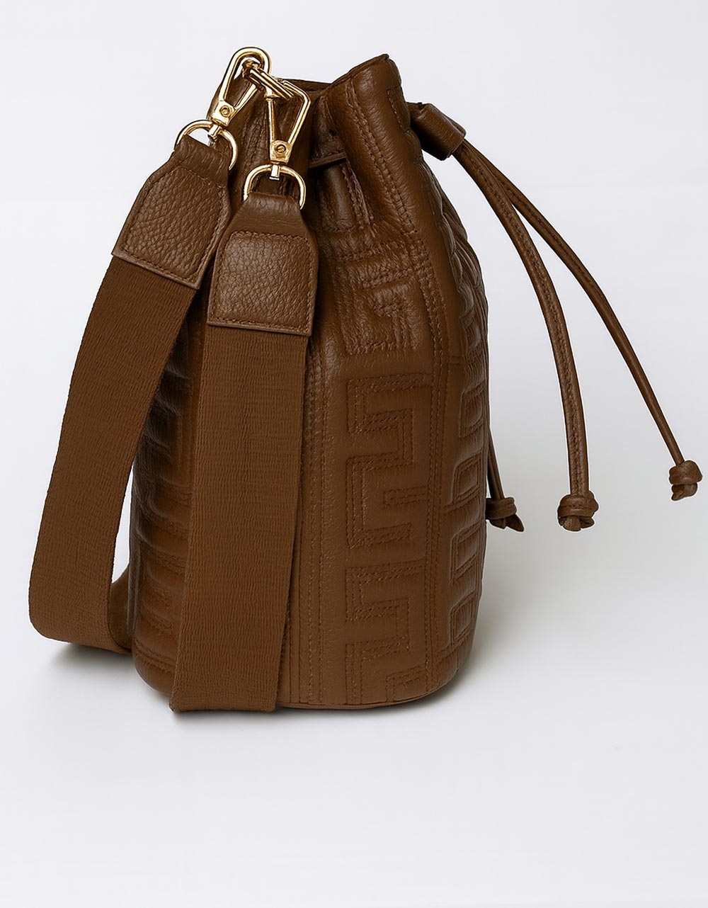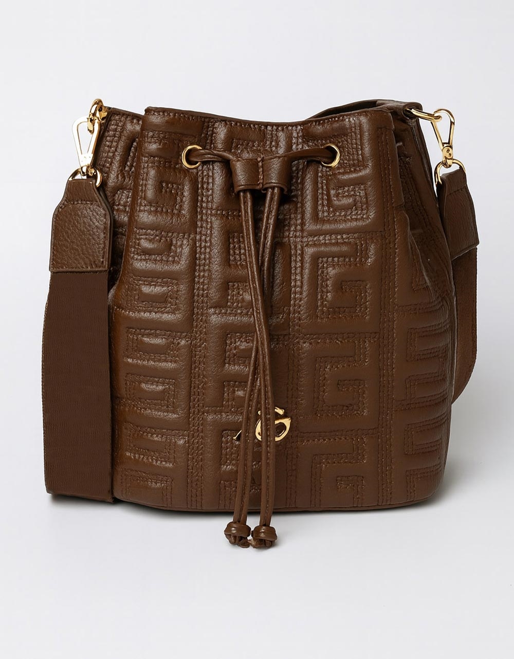 Χειροποίητη τσάντα ώμου πουγκί μαίανδρος με κλιπ Καφέ