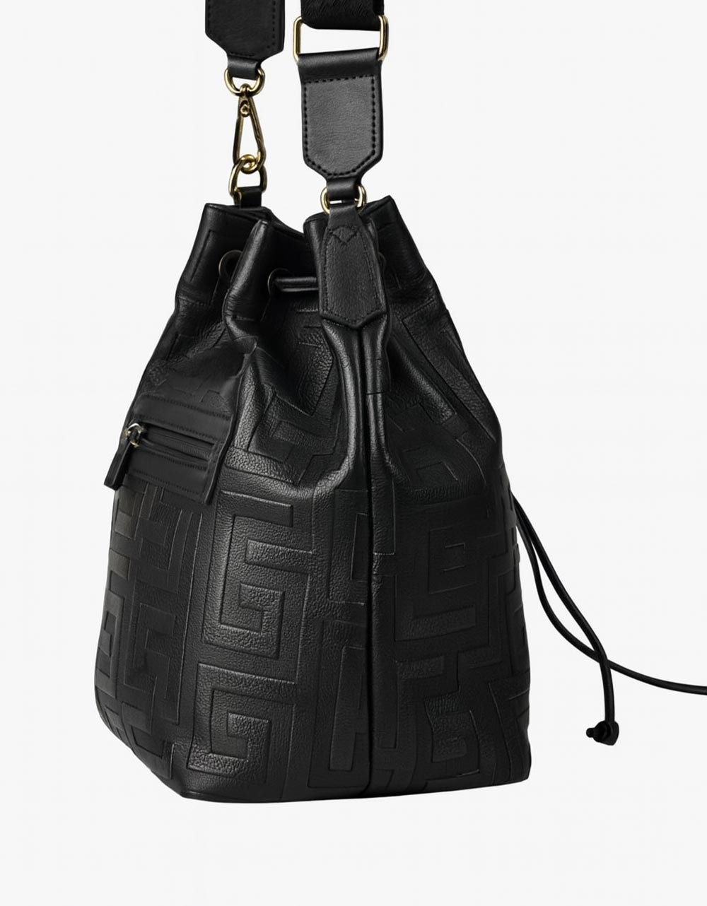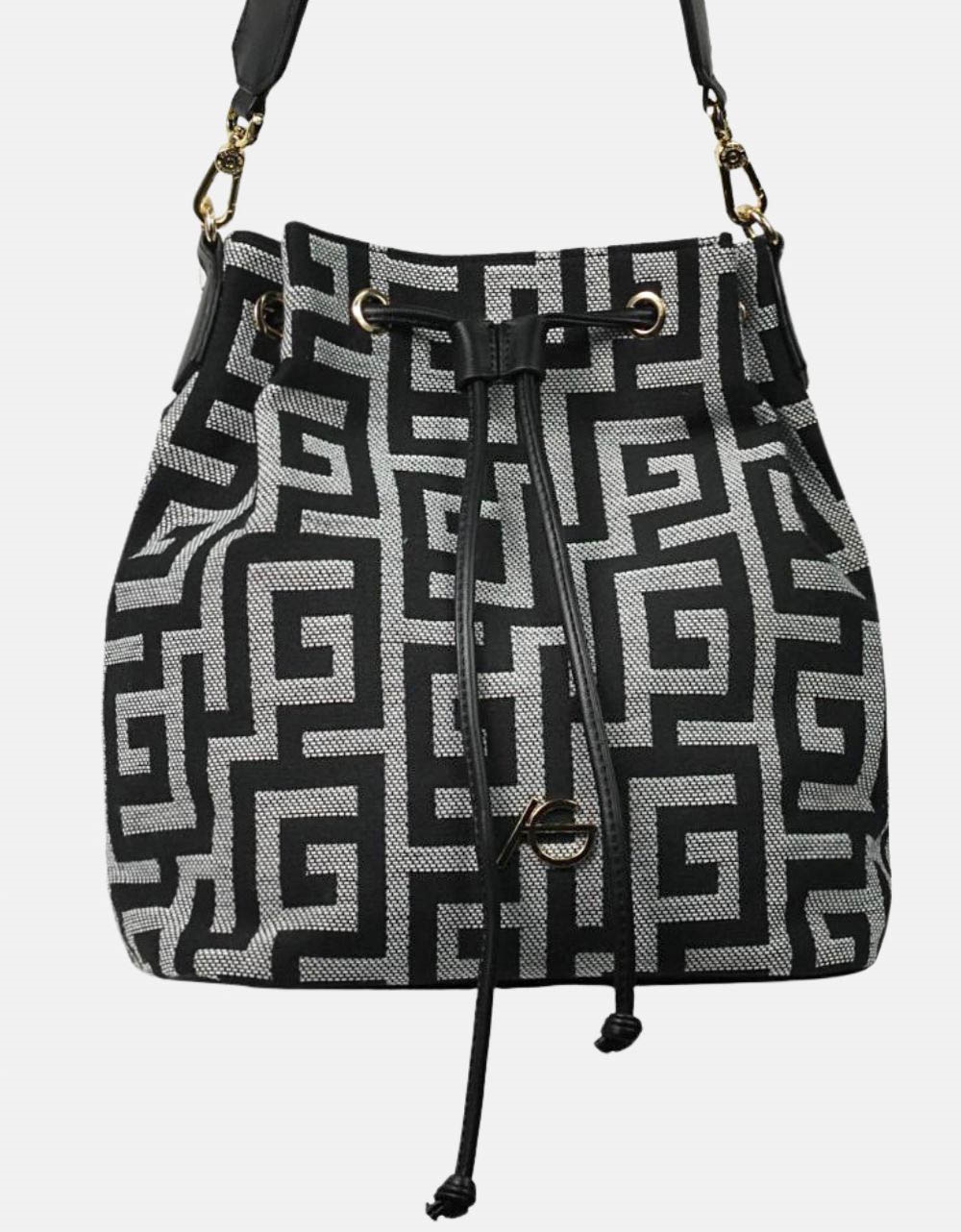Χειροποίητη τσάντα ώμου πουγκί μαίανδρος με κλιπ Μαύρο