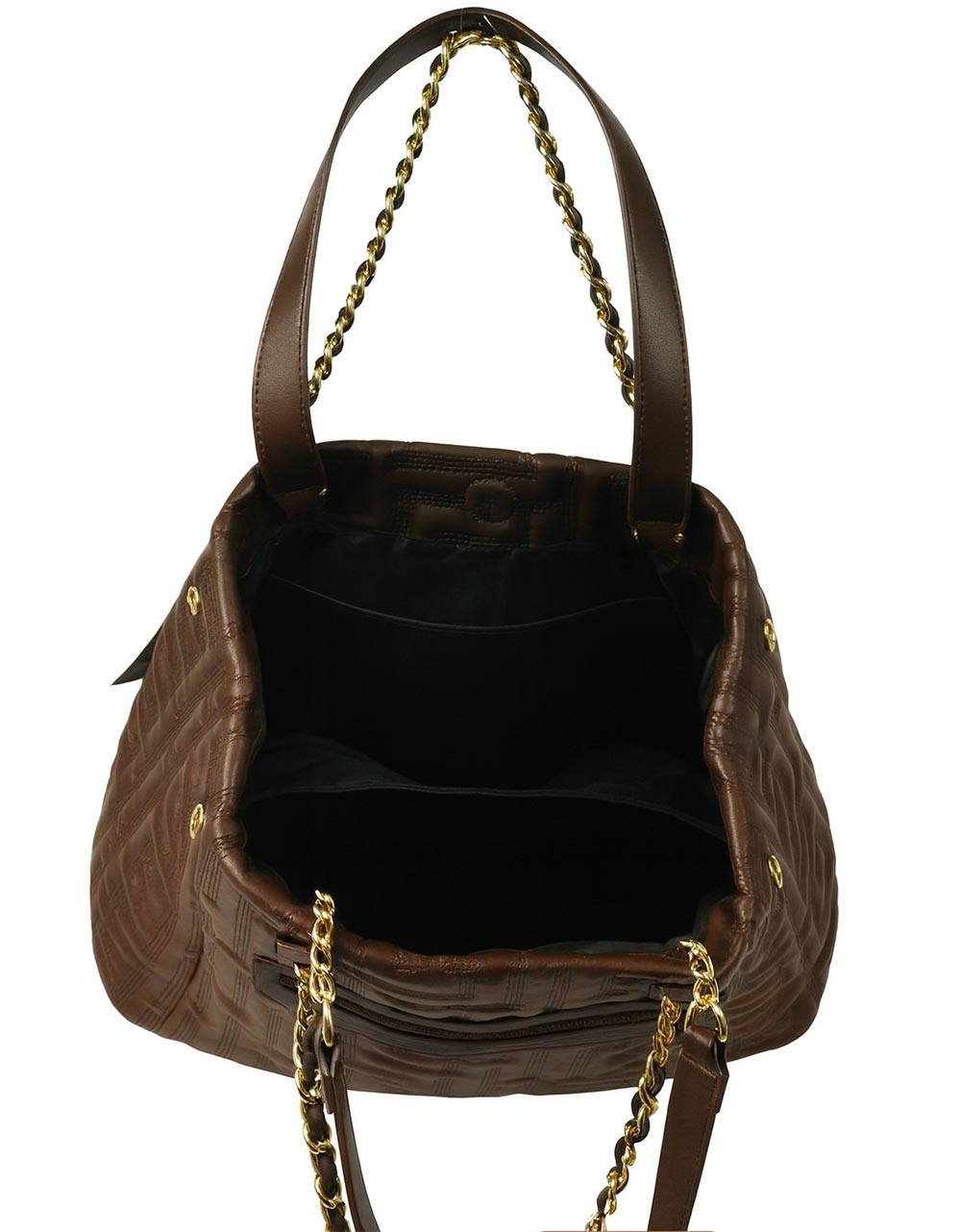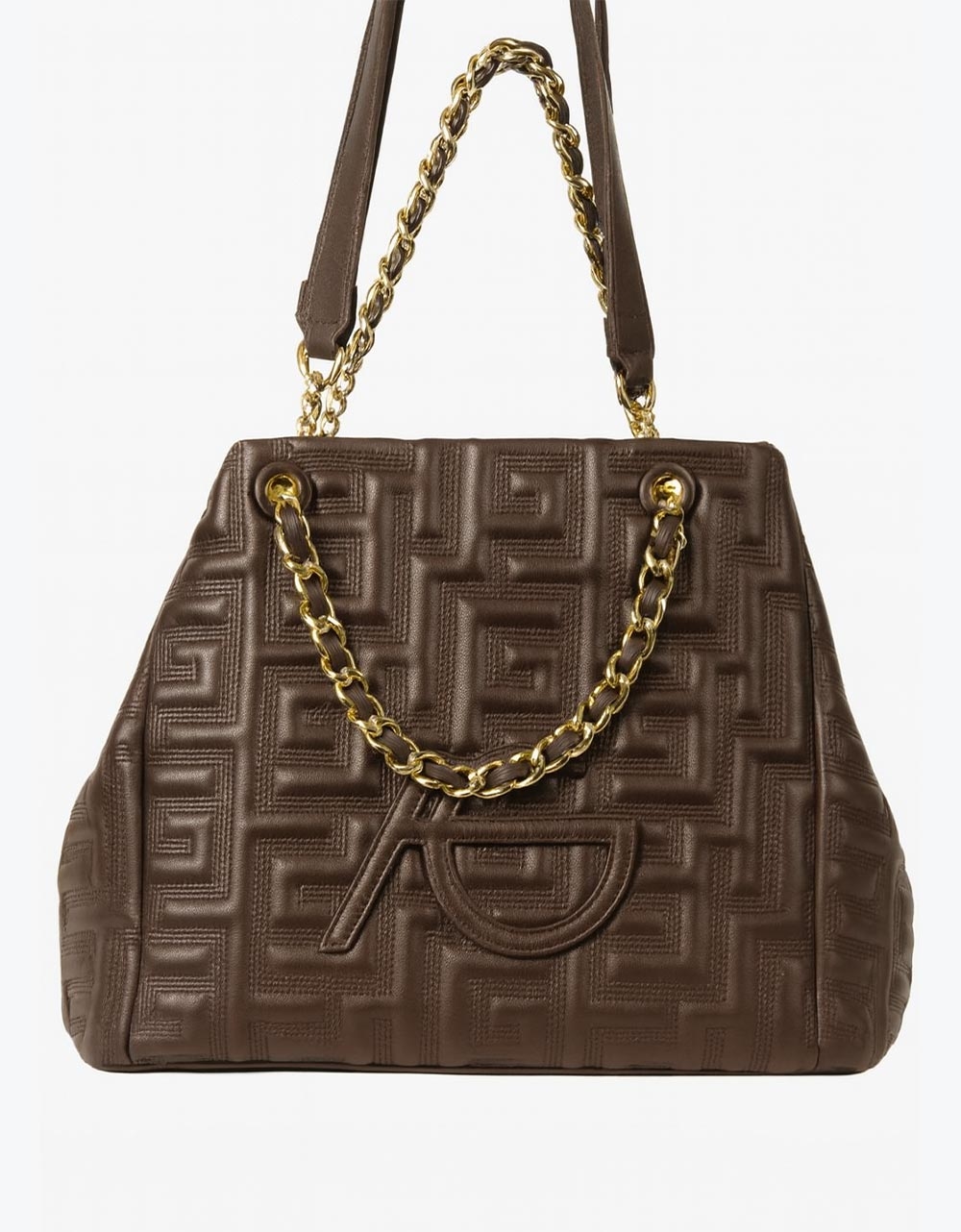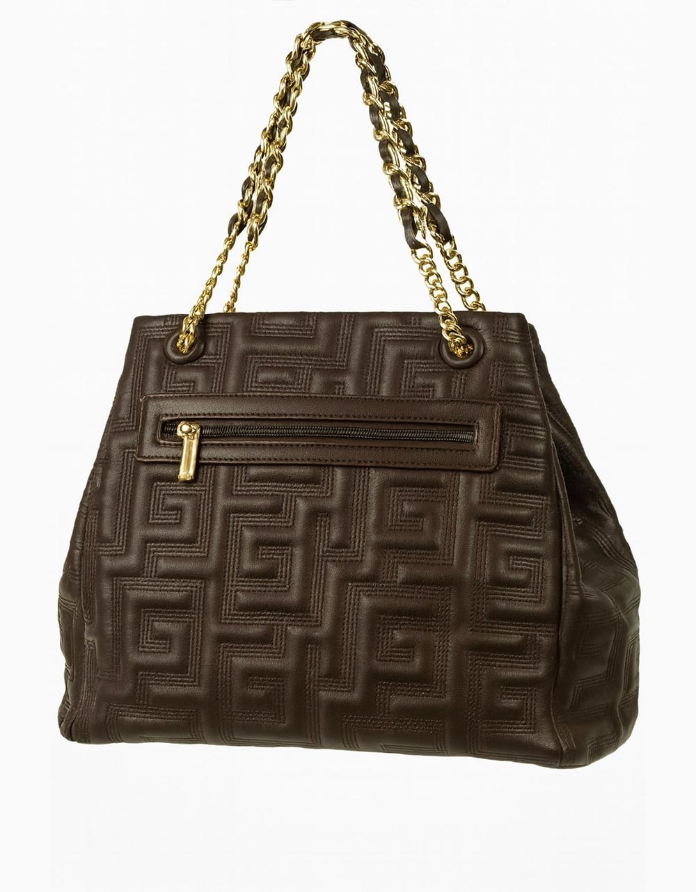 Χειροποίητη τσάντα ώμου με διπλό λουράκι από αλυσίδα Καφέ