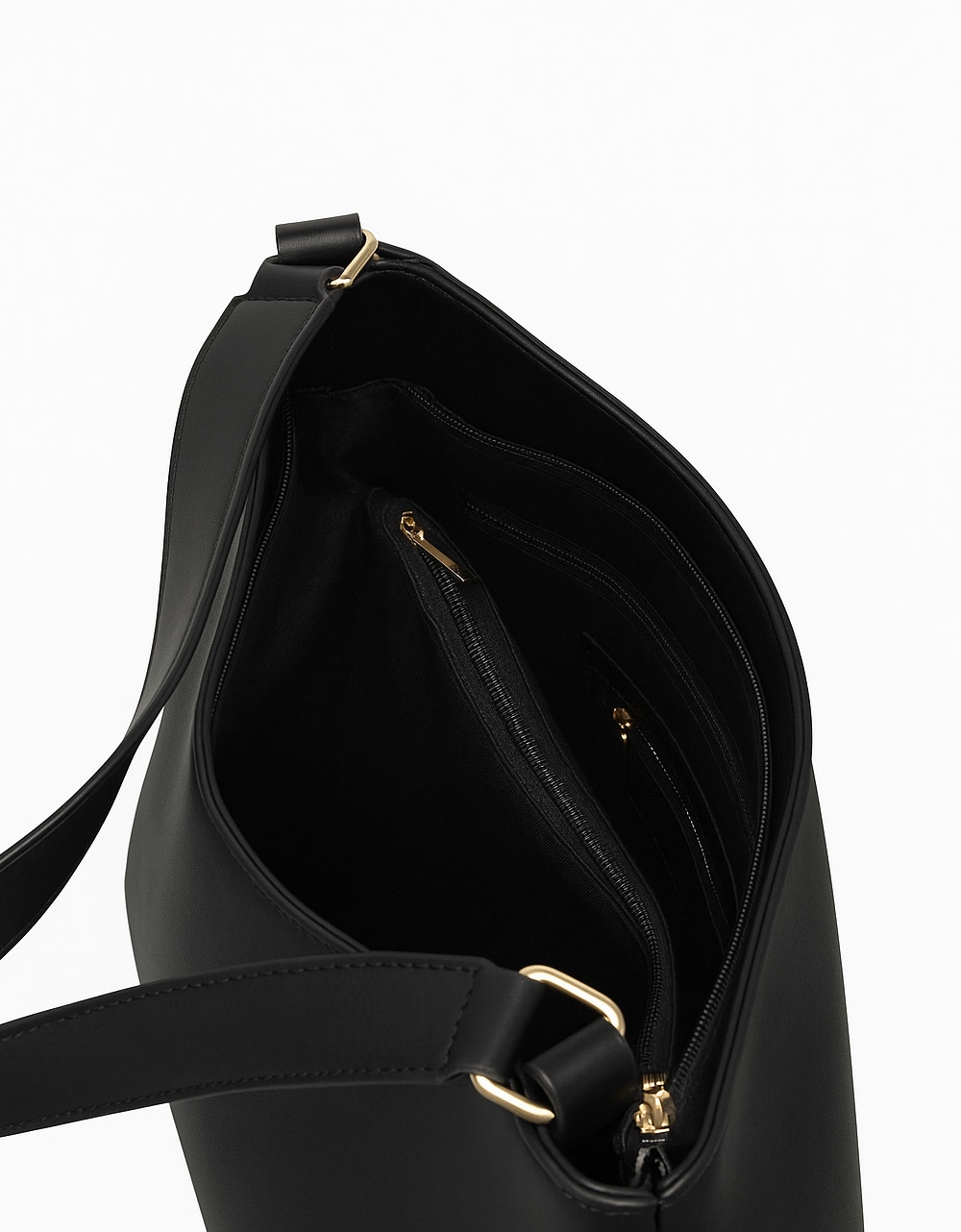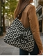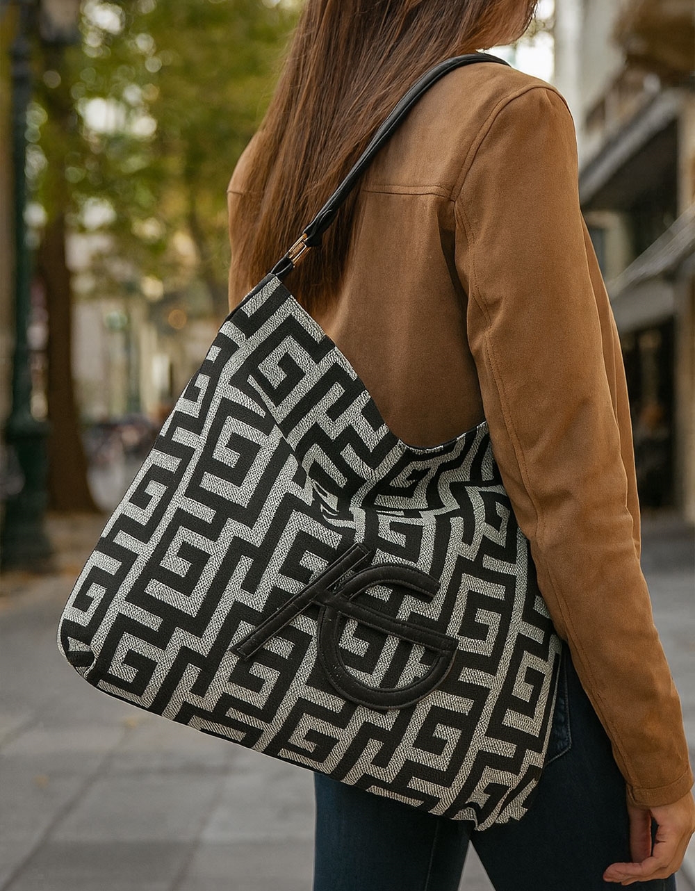 Χειροποίητη τσάντα ώμου με μοτίβο μαιάνδρου Μαύρο