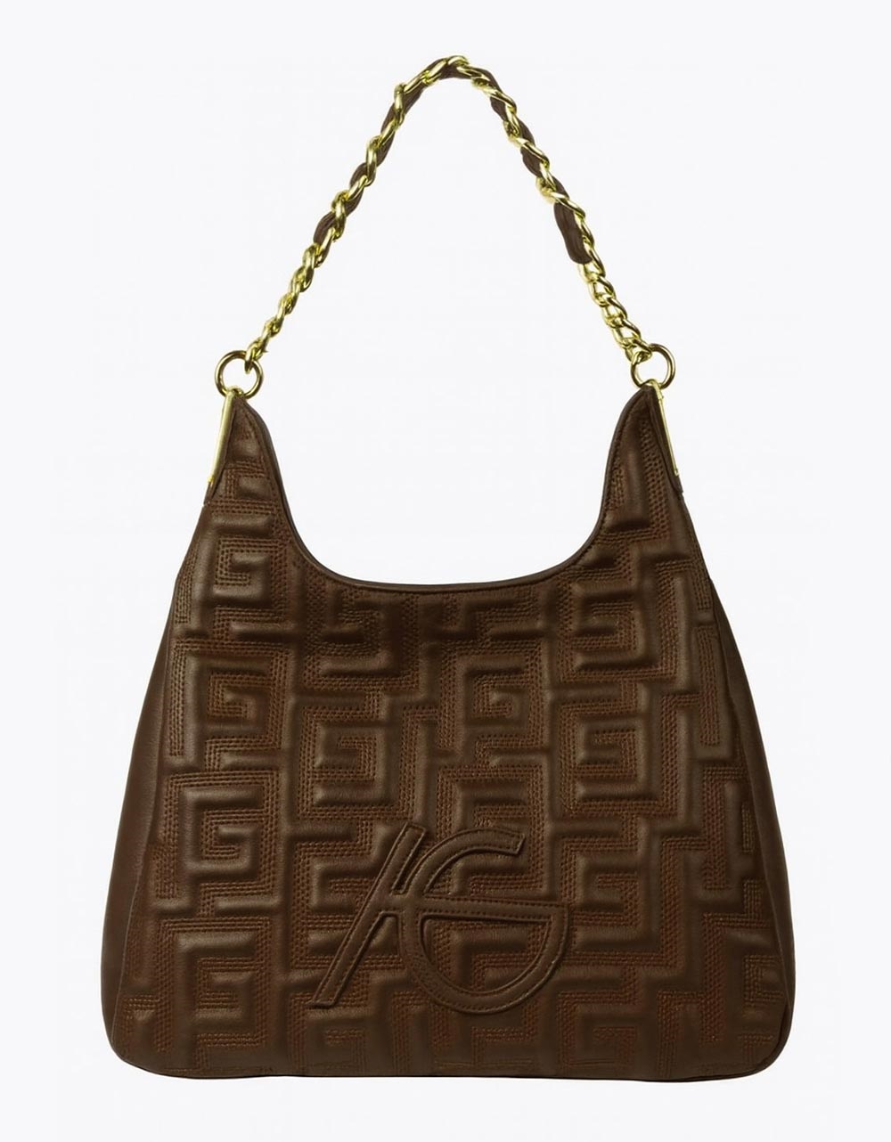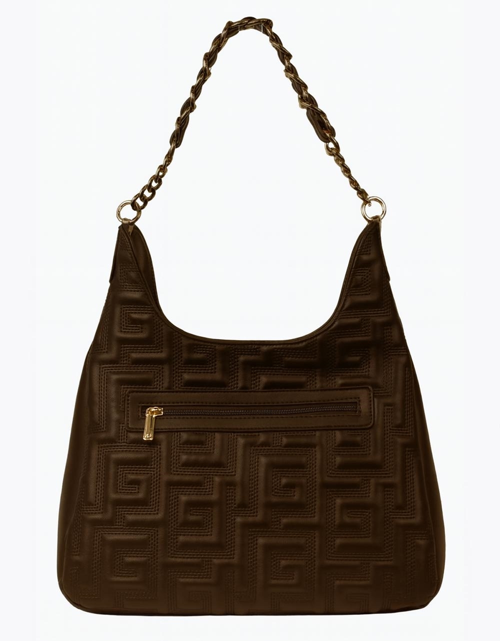 Χειροποίητη τσάντα ώμου με μοτίβο μαιάνδρου και αλυσίδα Καφέ