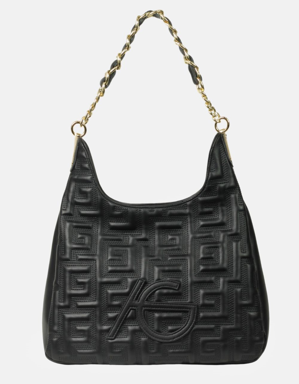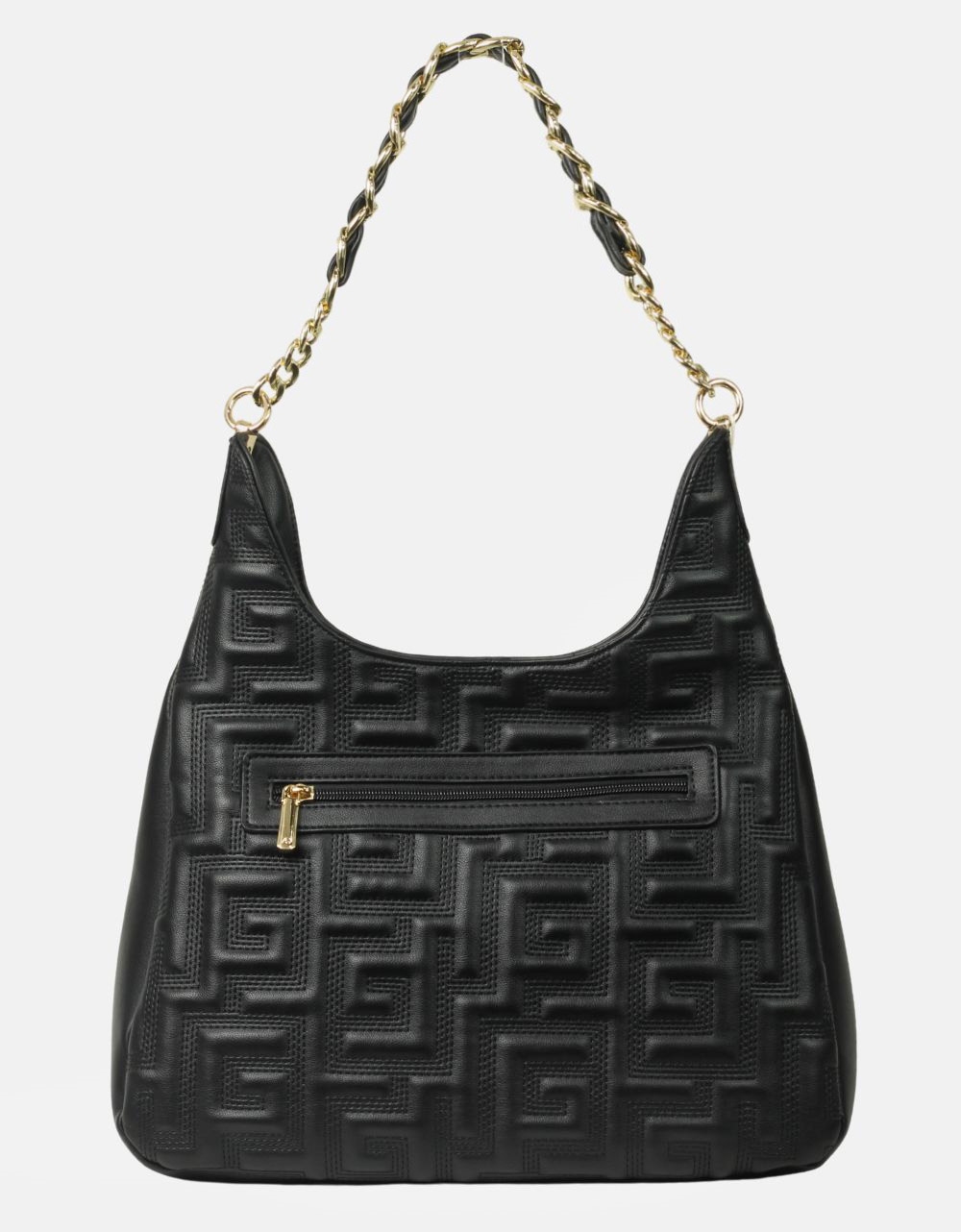 Χειροποίητη τσάντα ώμου με μοτίβο μαιάνδρου και αλυσίδα Μαύρο