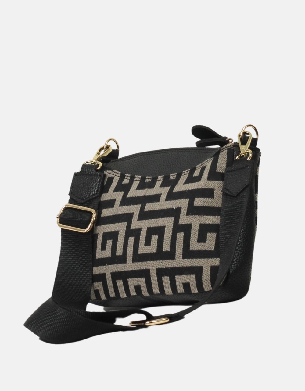 Χειροποίητο τσαντάκι ώμου με μαίανδρο , της εταιρείας ARI GORGIO . Κλείνει με φερμουάρ, διαθέτει ιμάντα για χιαστί χρήση και μπορεί να φορεθεί καθόλη τη διάρκεια της ημέρας.