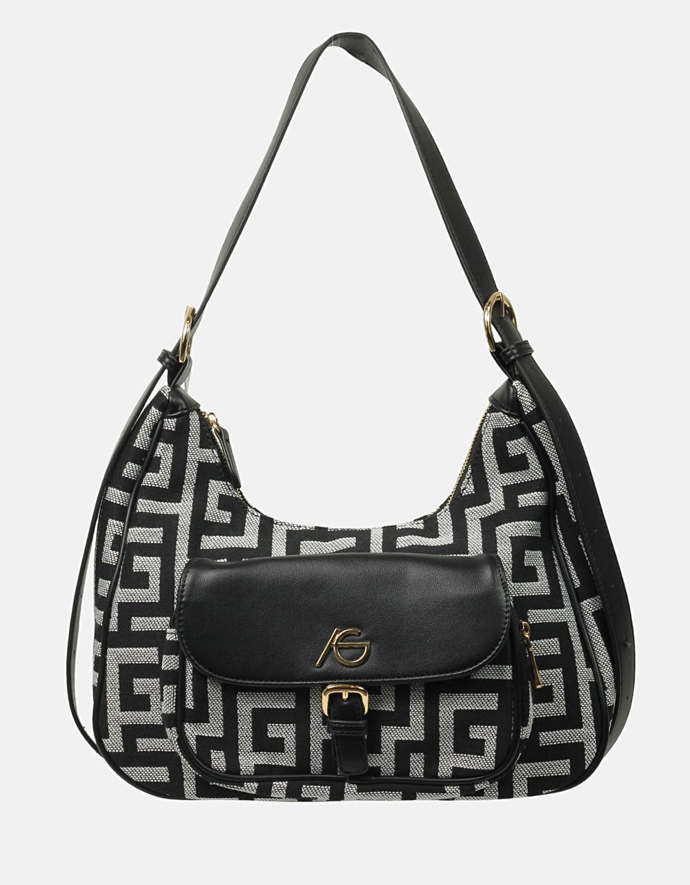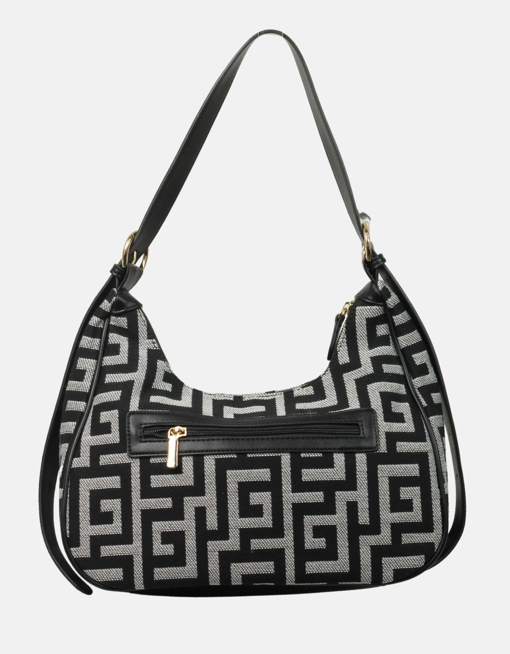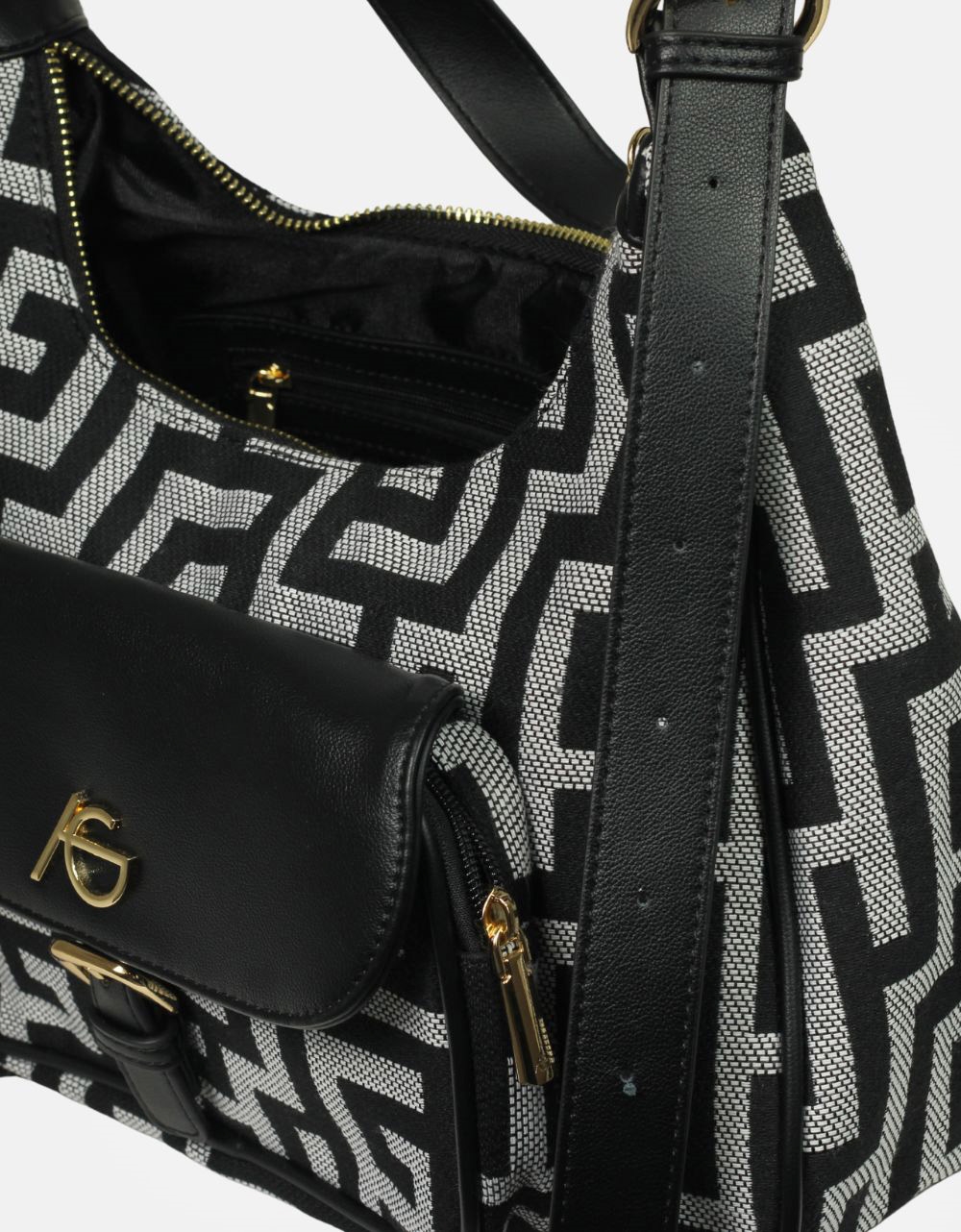 Χειροποίητη τσάντα ώμου με μαίανδρο και εξωτερική θήκη Μαύρο/Λευκό