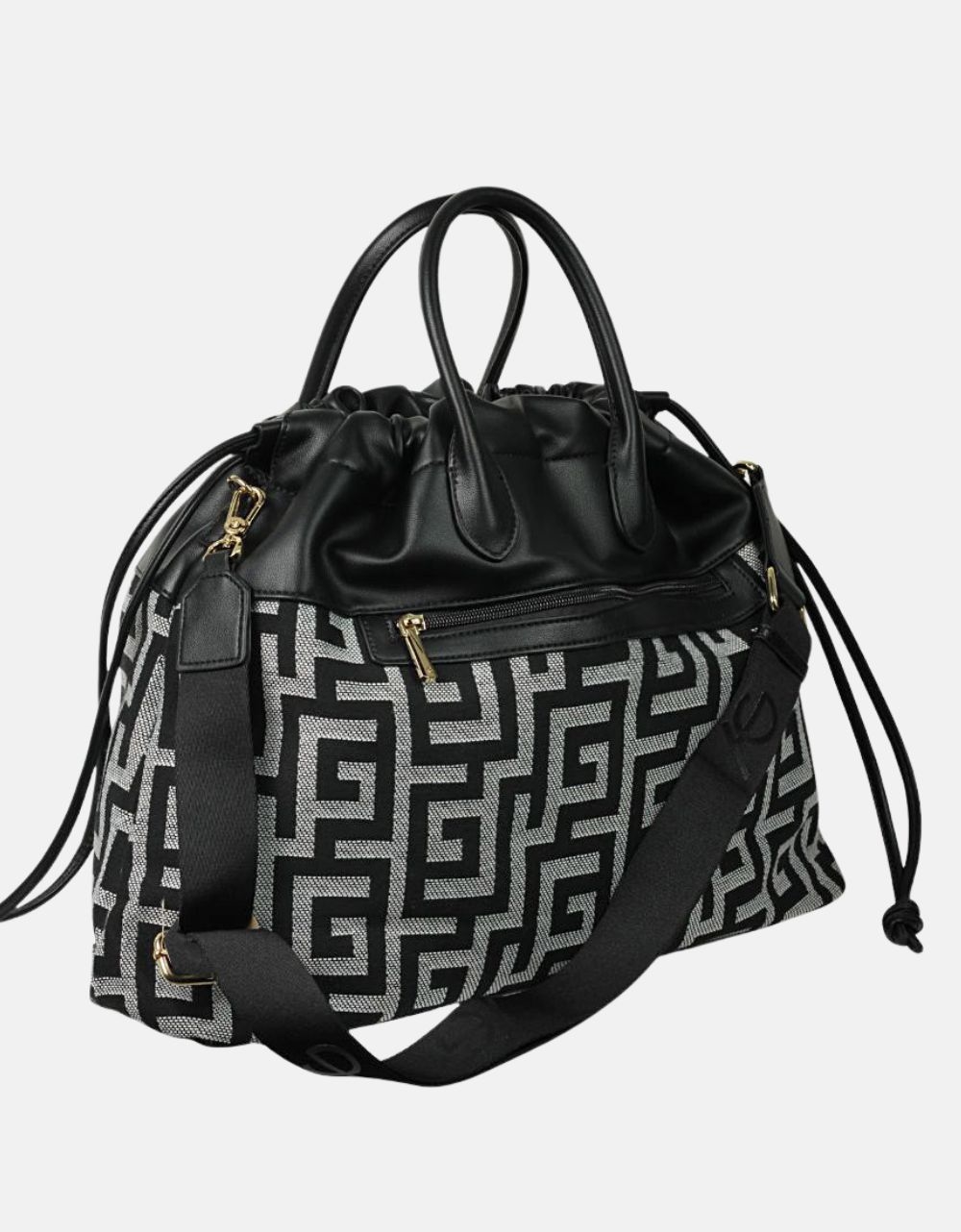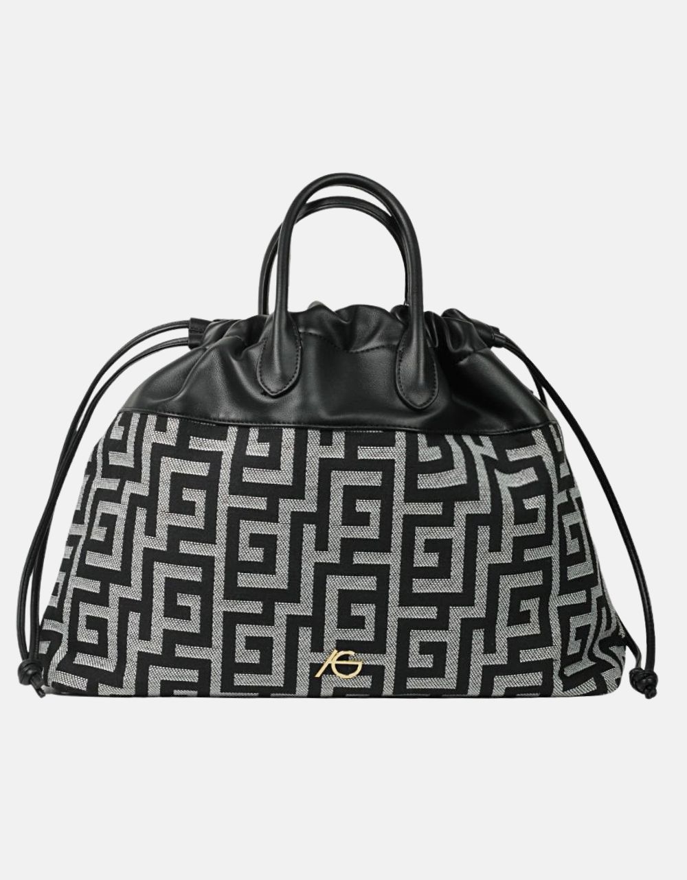 Χειροποίητη τσάντα χειρός με μαίανδρο και ιμάντα ώμου Μαύρο/Λευκό