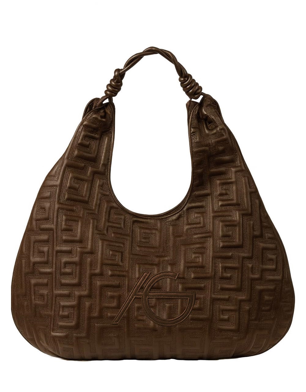 Xειροποίητη τσάντα χειρός με μαίανδρο με ιδιαίτερο σχέδιο L Καφέ
