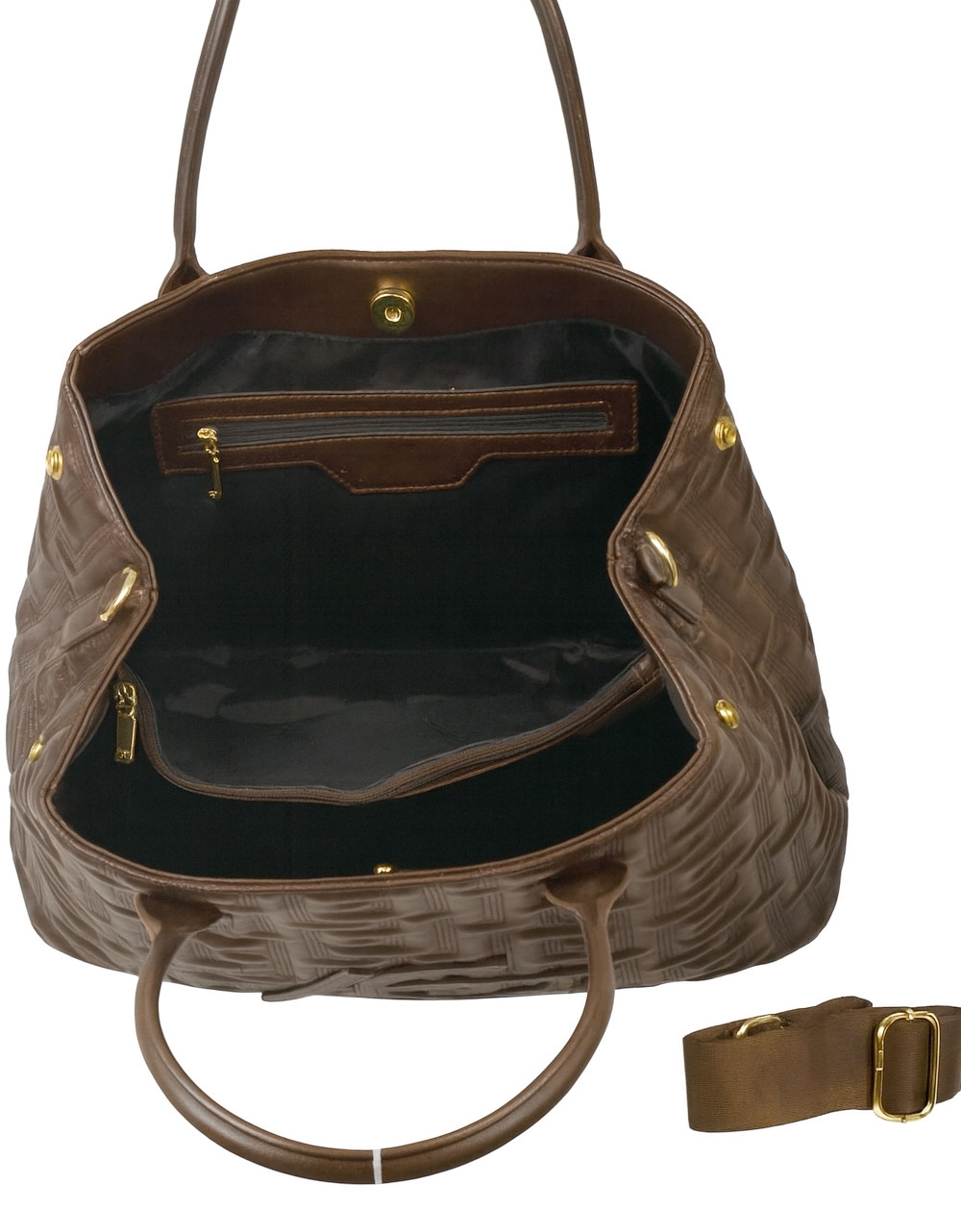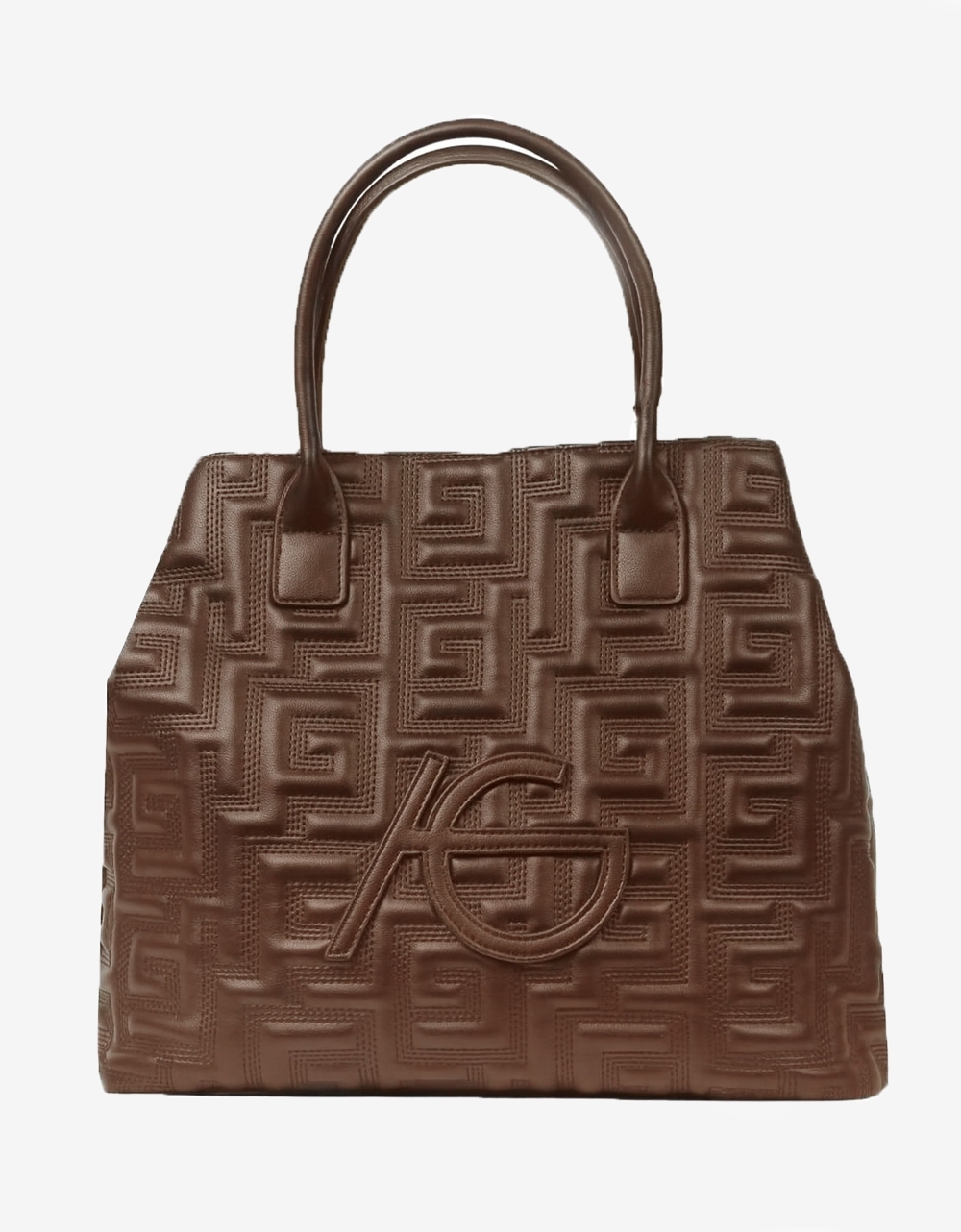 Xειροποίητη τσάντα χειρός με μοτίβο μαιάνδρου και κλίπ Καφέ