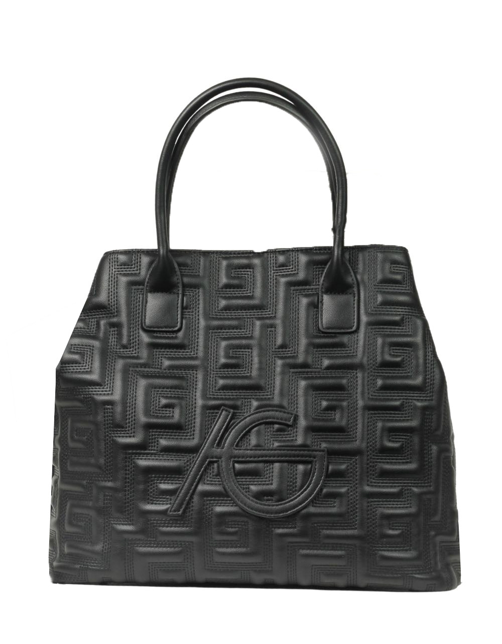 Xειροποίητη τσάντα χειρός με μοτίβο μαιάνδρου και κλίπ της εταιρείας ARI GORGIO. Είναι κατασκευασμένη από ύφαμα πολύ ευρύχωρη με εσωτερικά χωρίσματα και κλείνει με μαγνητικό κλίπ.