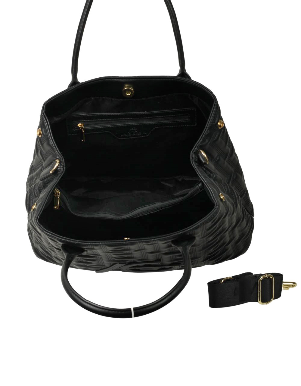 Xειροποίητη τσάντα χειρός με μοτίβο μαιάνδρου και κλίπ Μαύρο