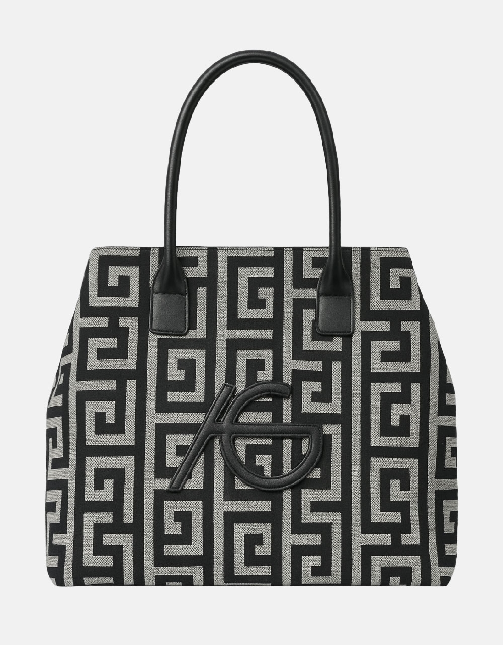 Xειροποίητη τσάντα χειρός με μοτίβο μαιάνδρου και κλίπ Μαύρο/Λευκό