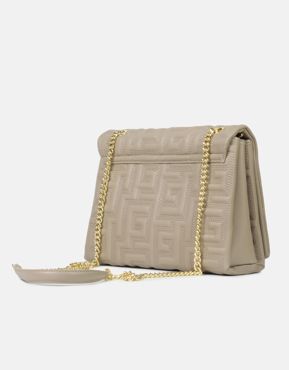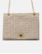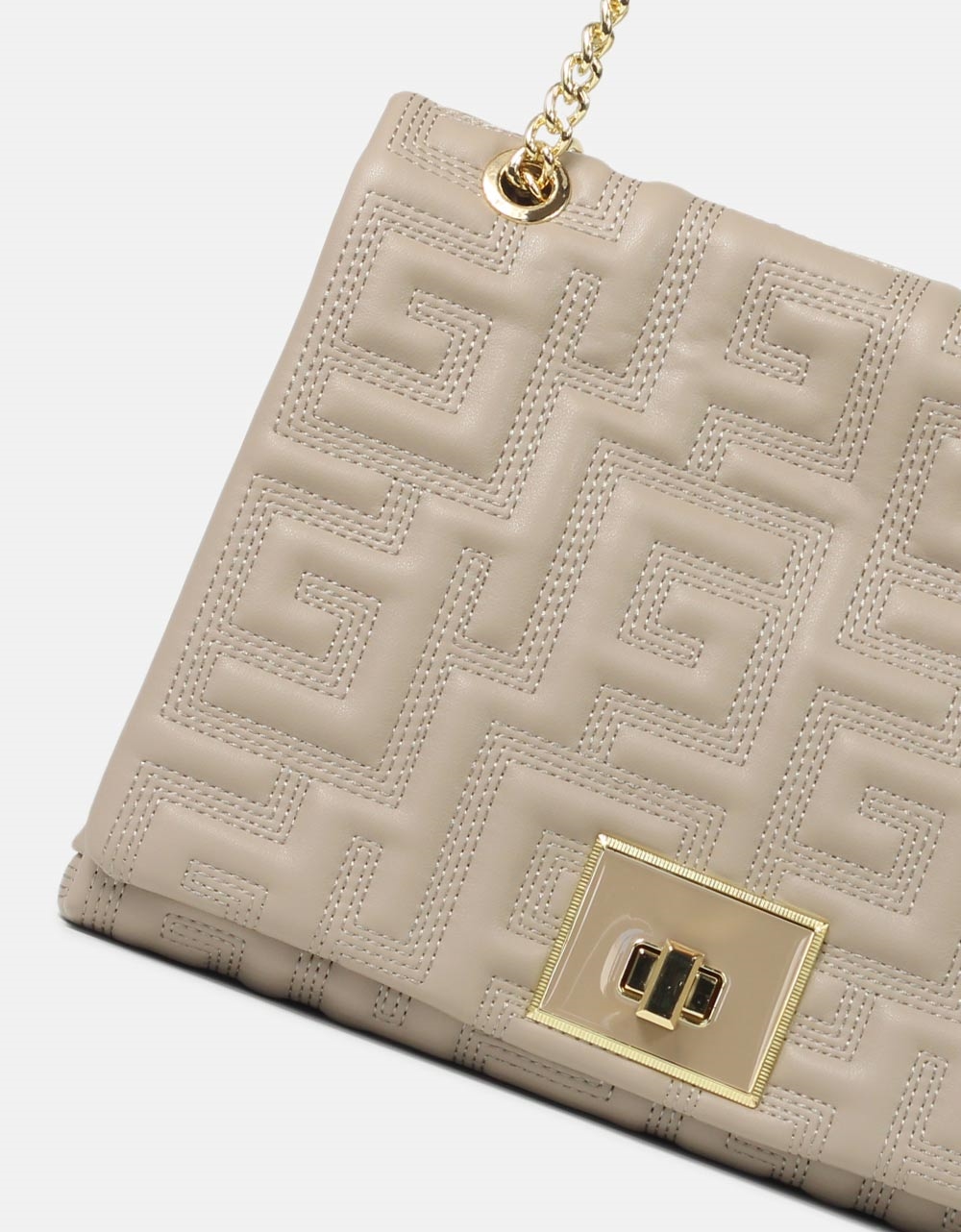 Tσάντα ώμου με μοτίβο μαιάνδρου και αλυσίδα Μπεζ