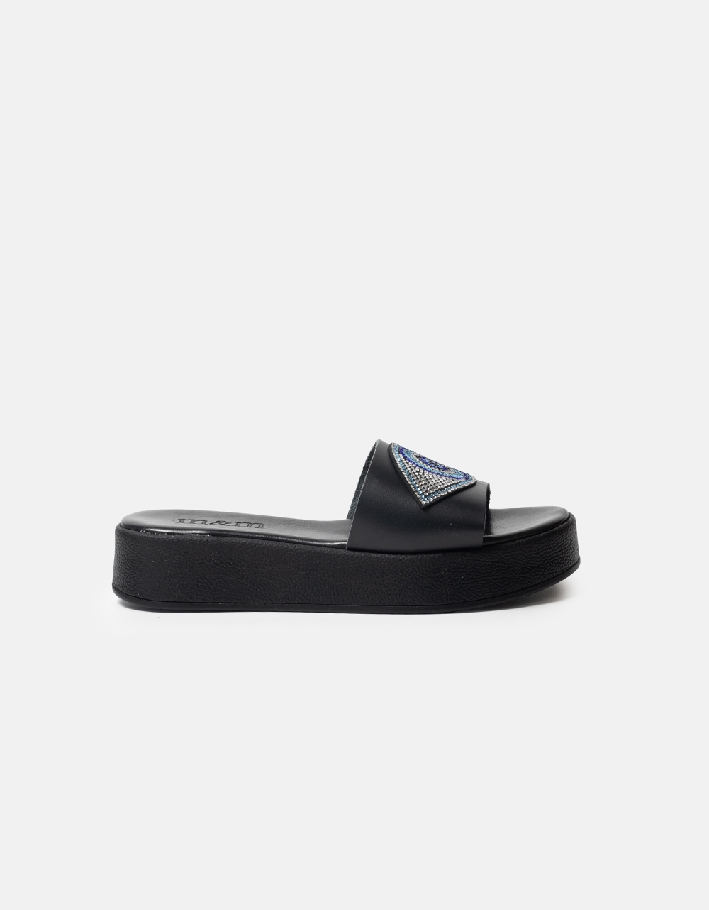 Δερμάτινα flatforms Ελληνικής κατασκευήςμε σχέδιο μάτι Μαύρο