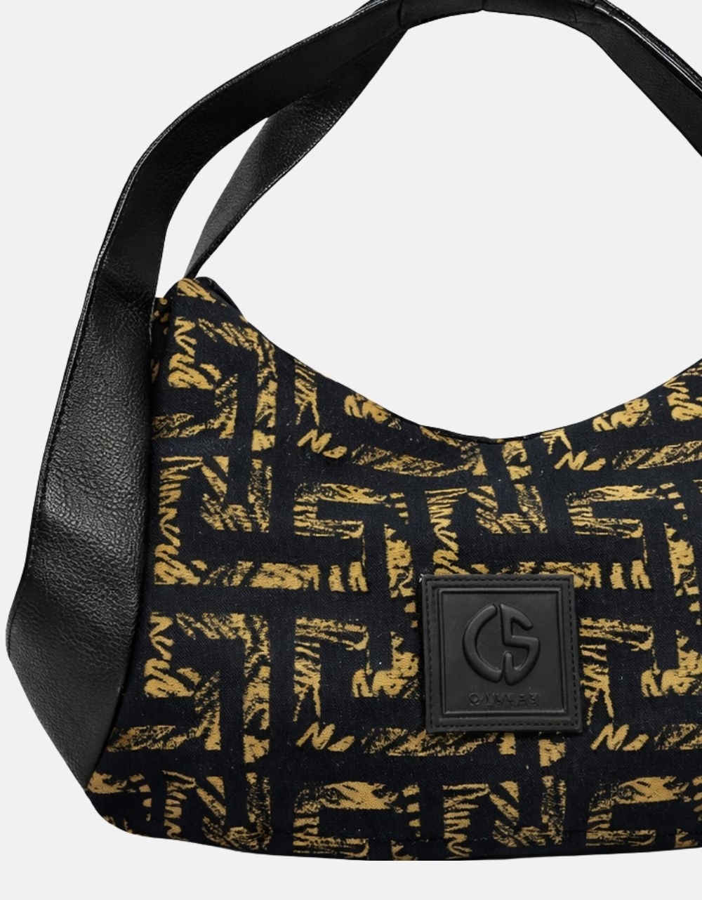 Xειροποίητη τσάντα χειρός με μοτίβο μαιάνδρου και κλίπ της εταιρείας Canva the bags. Είναι κατασκευασμένη από ύφαμα πολύ ευρύχωρη με εσωτερικά χωρίσματα και κλείνει με μαγνητικό κλίπ.