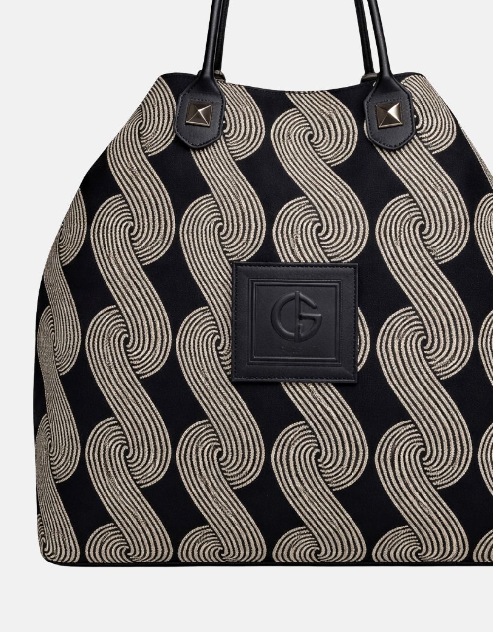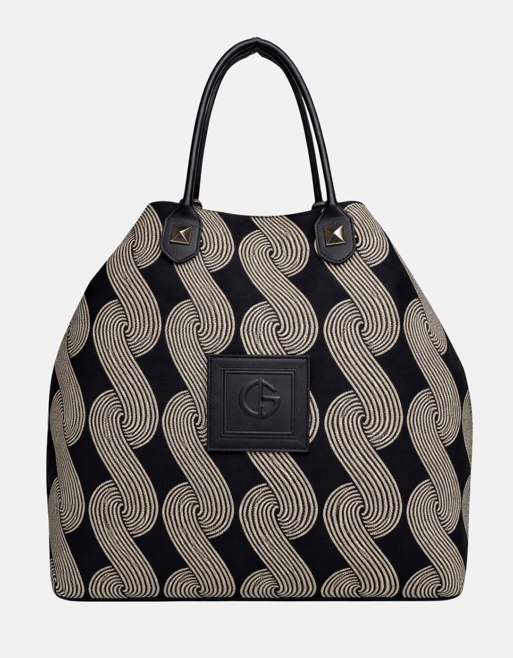 Xειροποίητη τσάντα χειρός με μοτίβο μαιάνδρου και κλίπ της εταιρείας Canva the bags. Είναι κατασκευασμένη από ύφαμα πολύ ευρύχωρη με εσωτερικά χωρίσματα και κλείνει με μαγνητικό κλίπ.