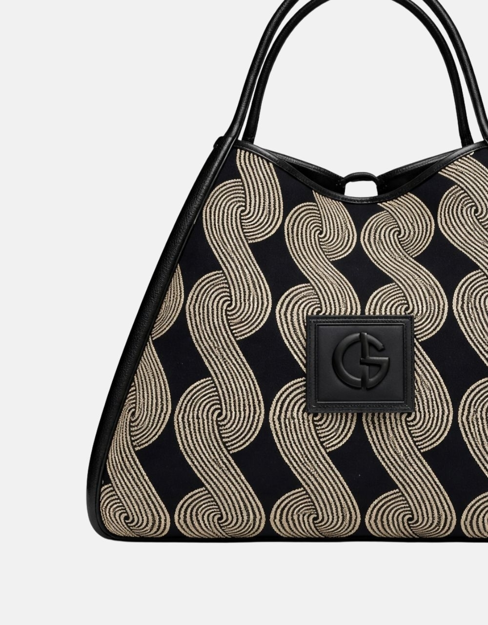 Xειροποίητη τσάντα χειρός PASIPHAE Μαύρο/Μπέζ